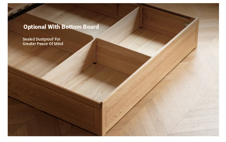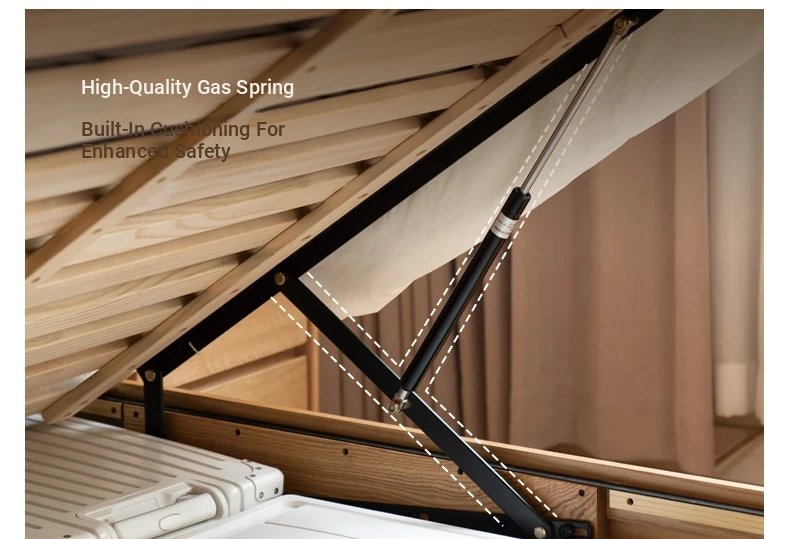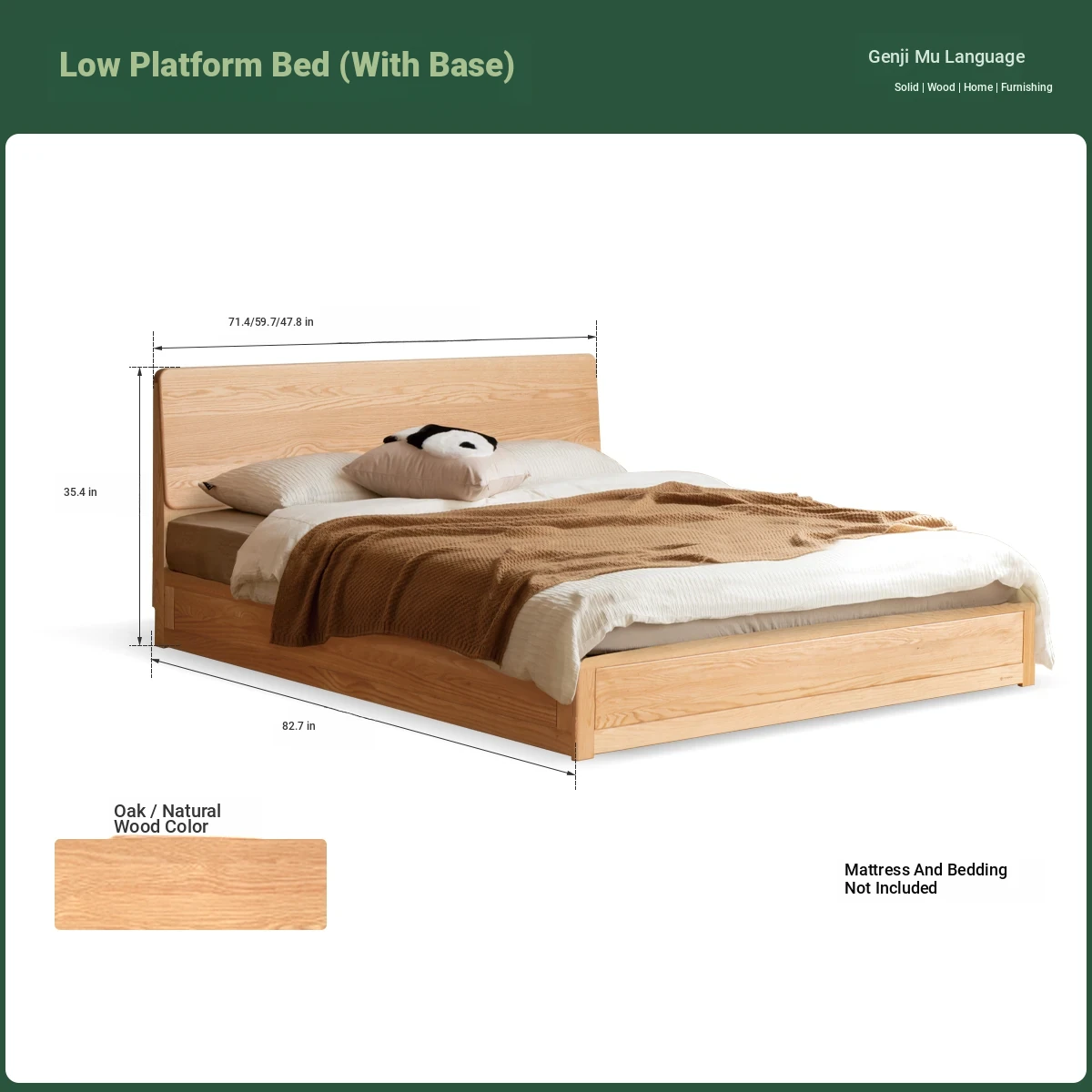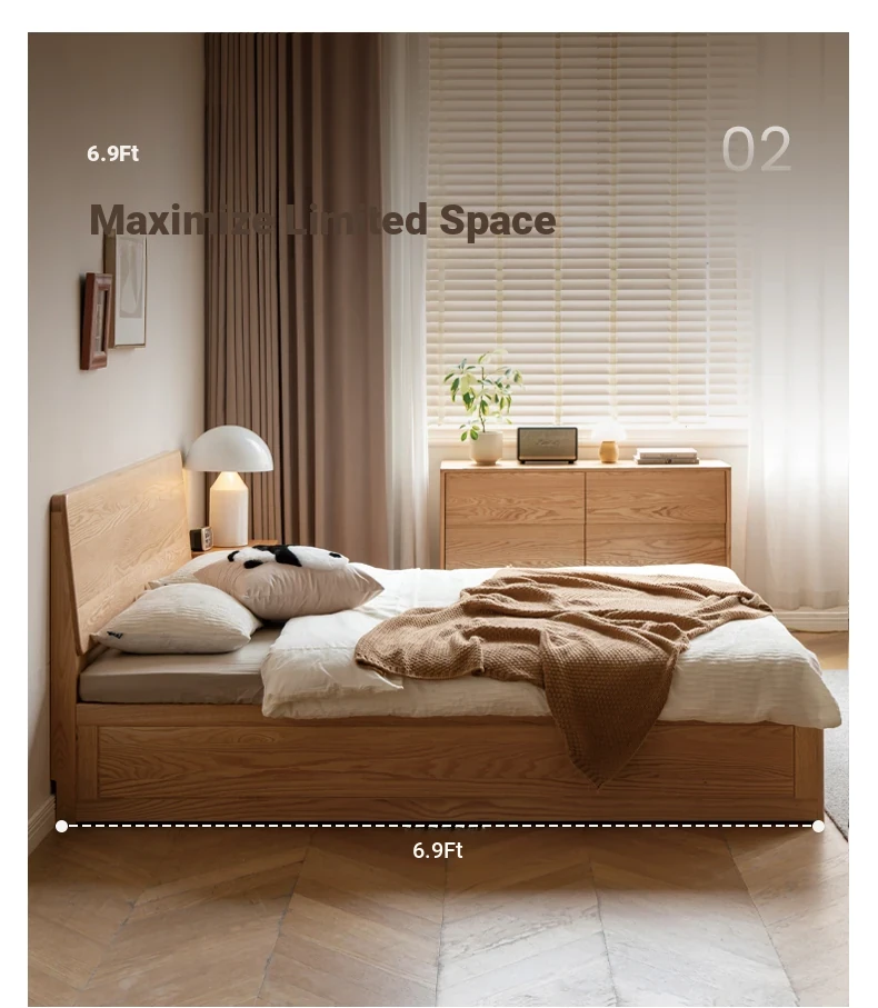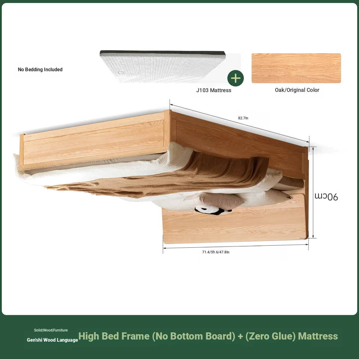 Genji Wood Simple Solid Wood Bed - Minimalist Design for Bedrooms, Double-Sized Natural Oak Storage Bed with Gas Lift Mechanism, Perfect for Home Use