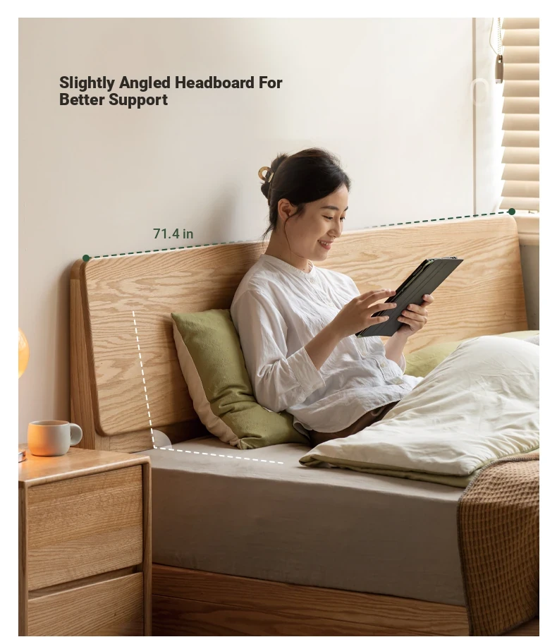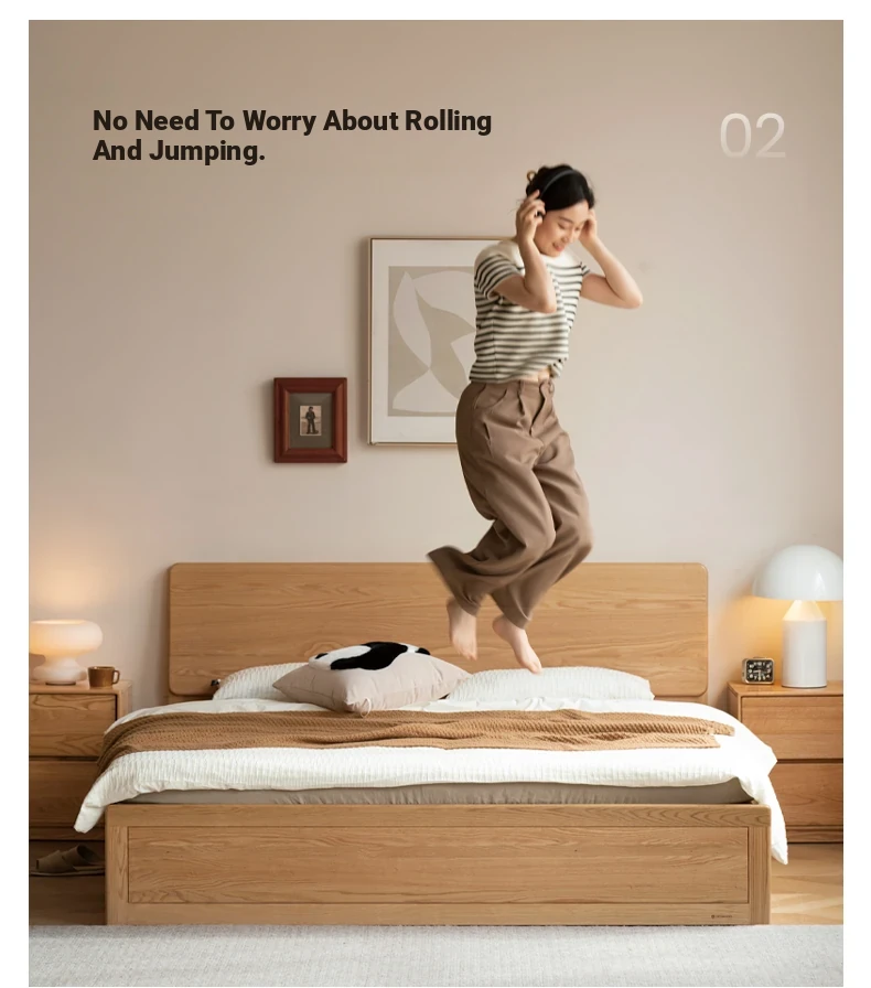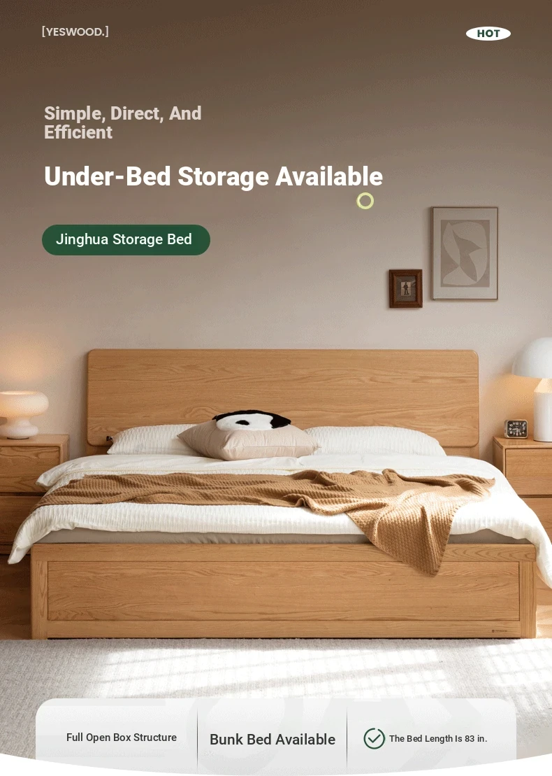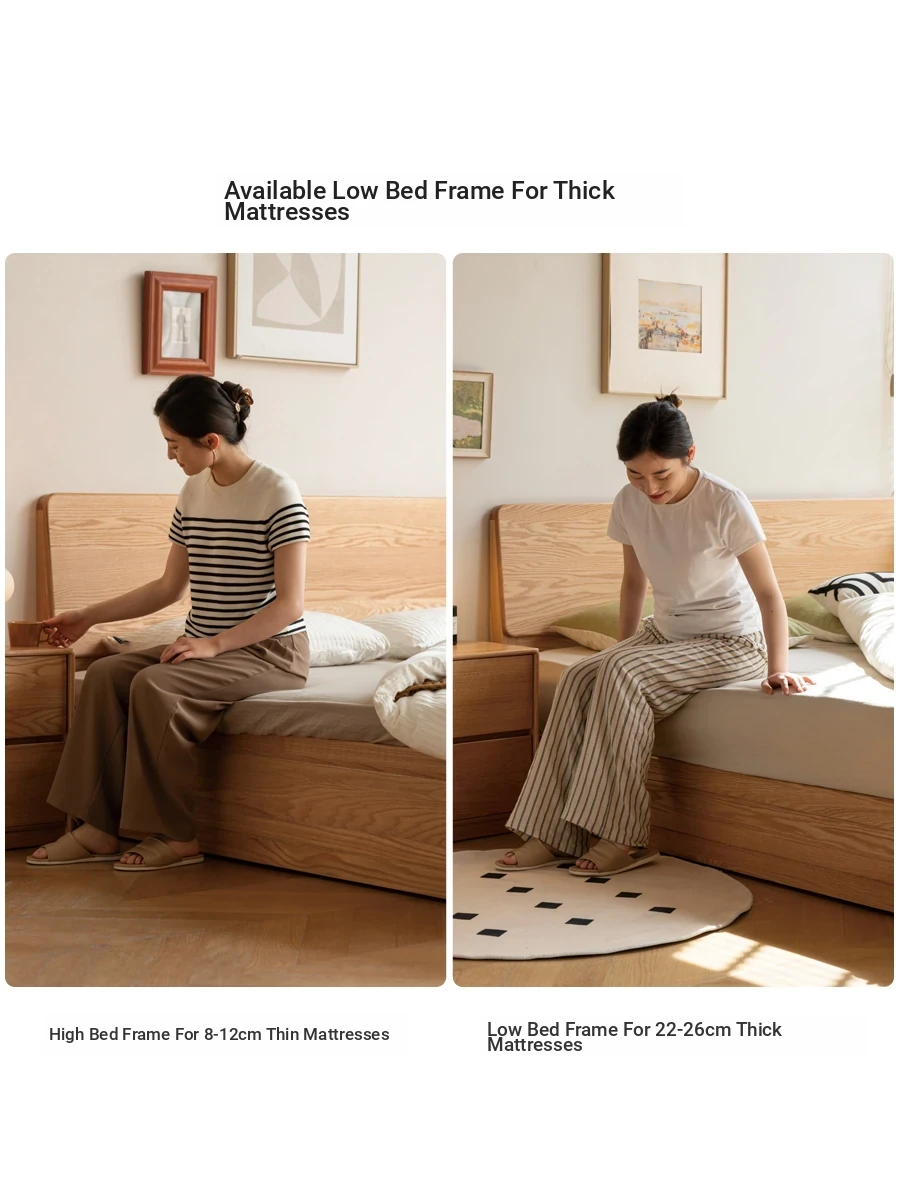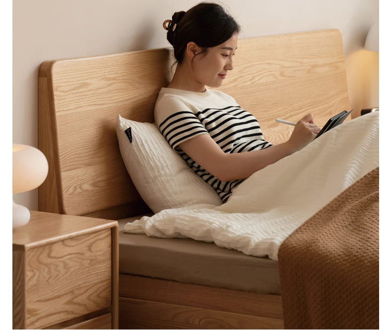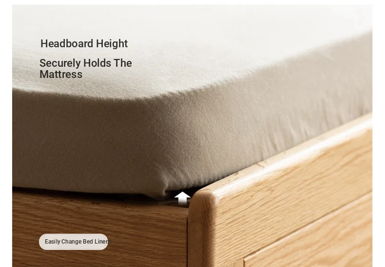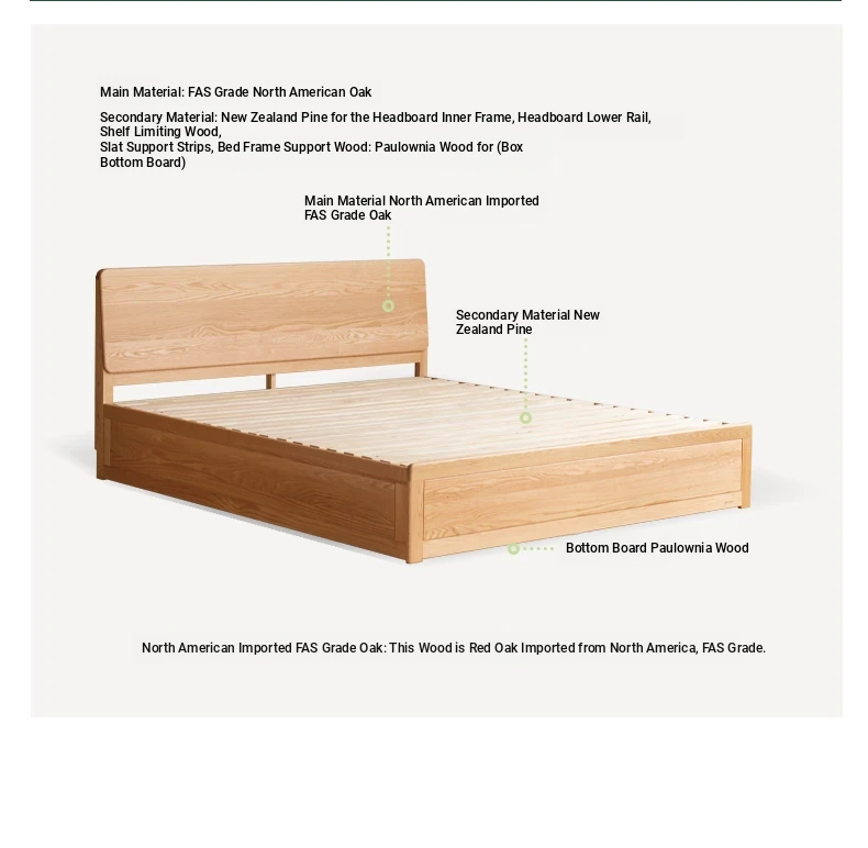 Genji Wood Simple Solid Wood Bed - Minimalist Design for Bedrooms, Double-Sized Natural Oak Storage Bed with Gas Lift Mechanism, Perfect for Home Use