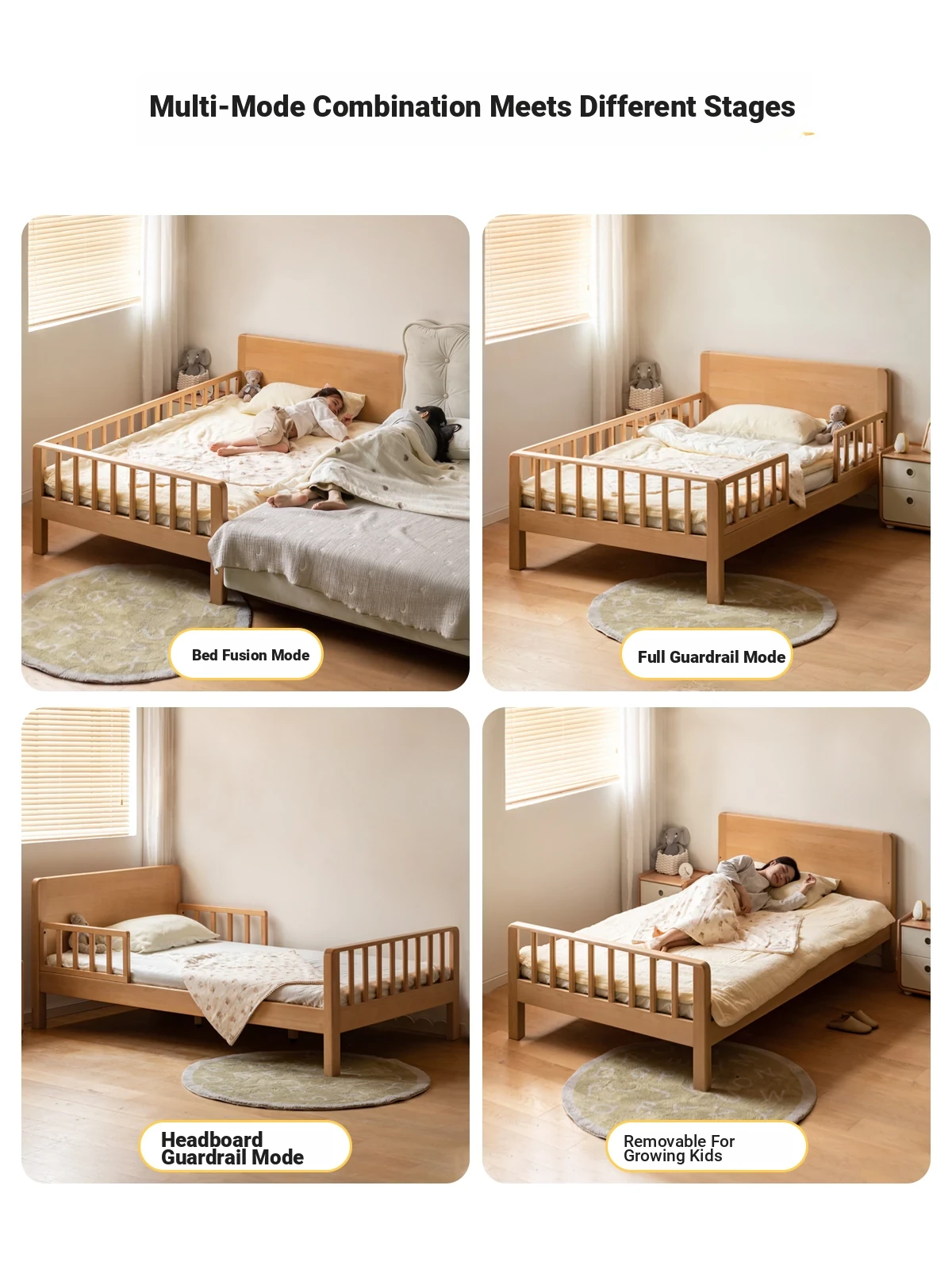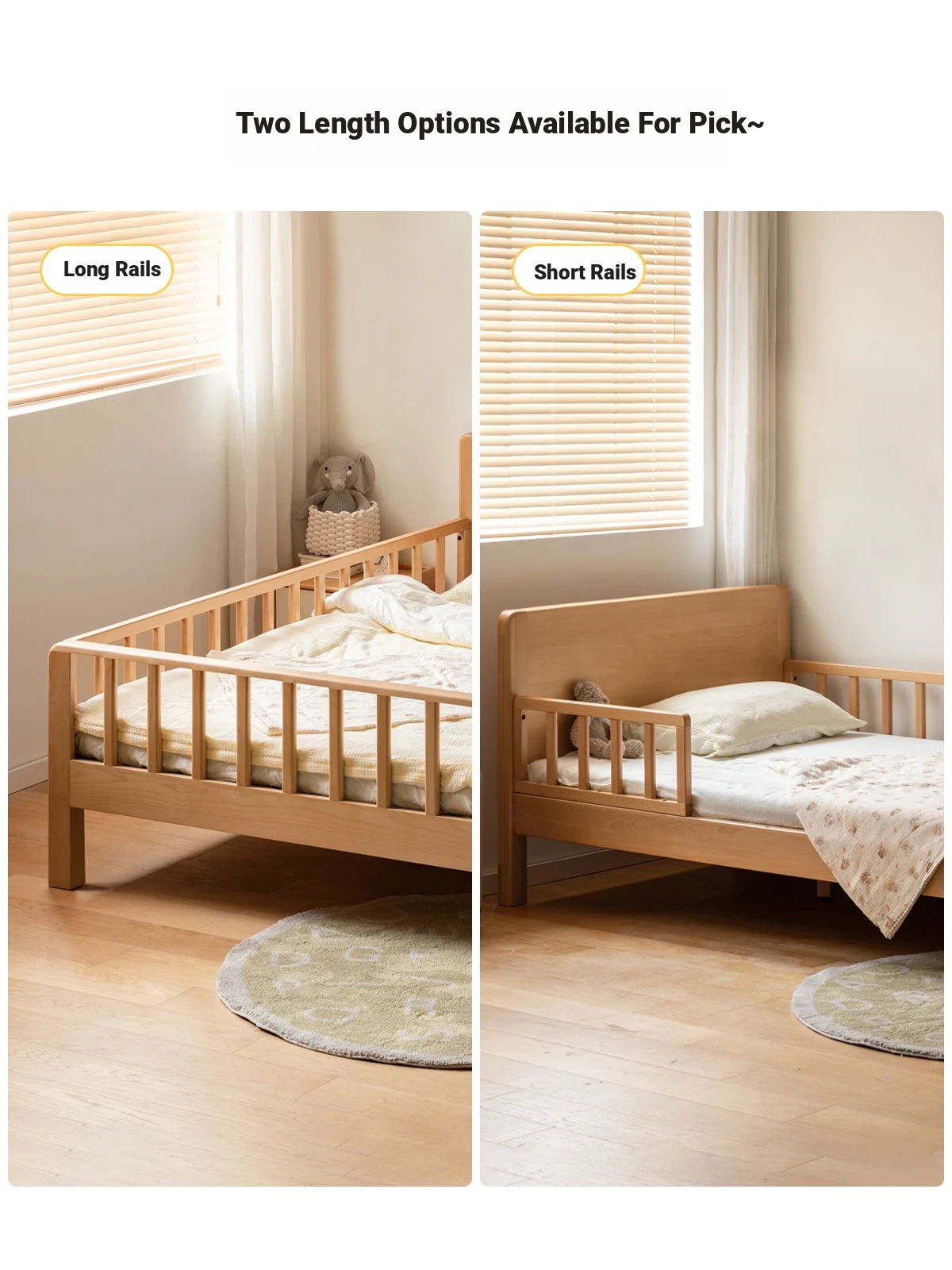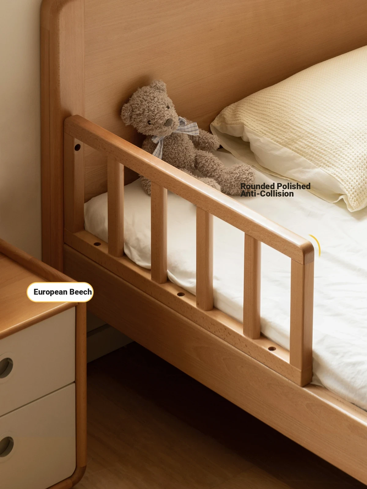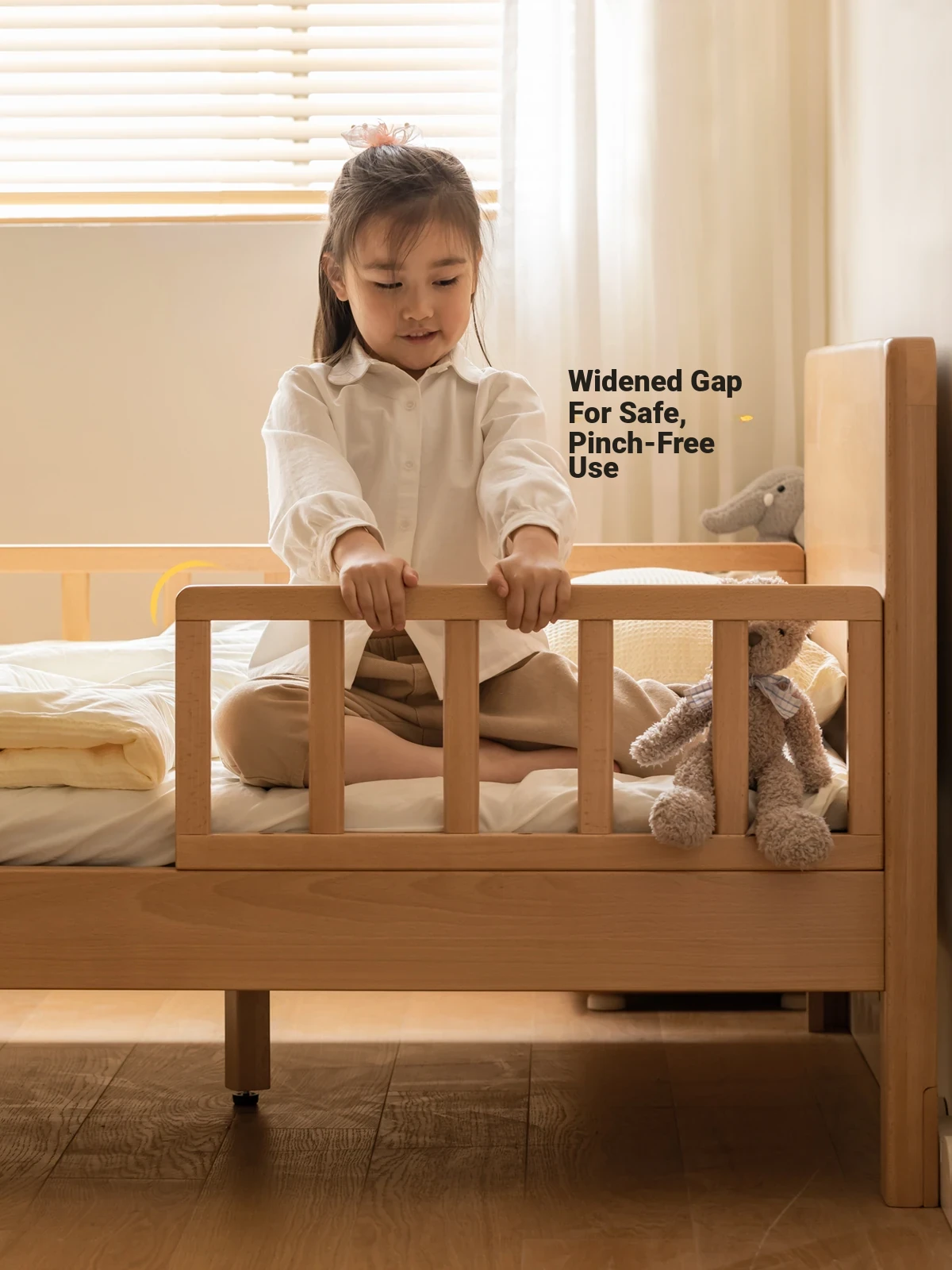 Gen's Wood Natural Solid Wood Children’s Bedside Guardrail - Detachable 3-Sided Safety Barrier for Home Use, Prevents Falls and Ensures a Safe Sleep Environment.