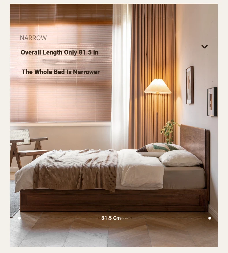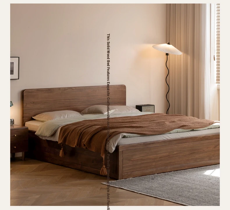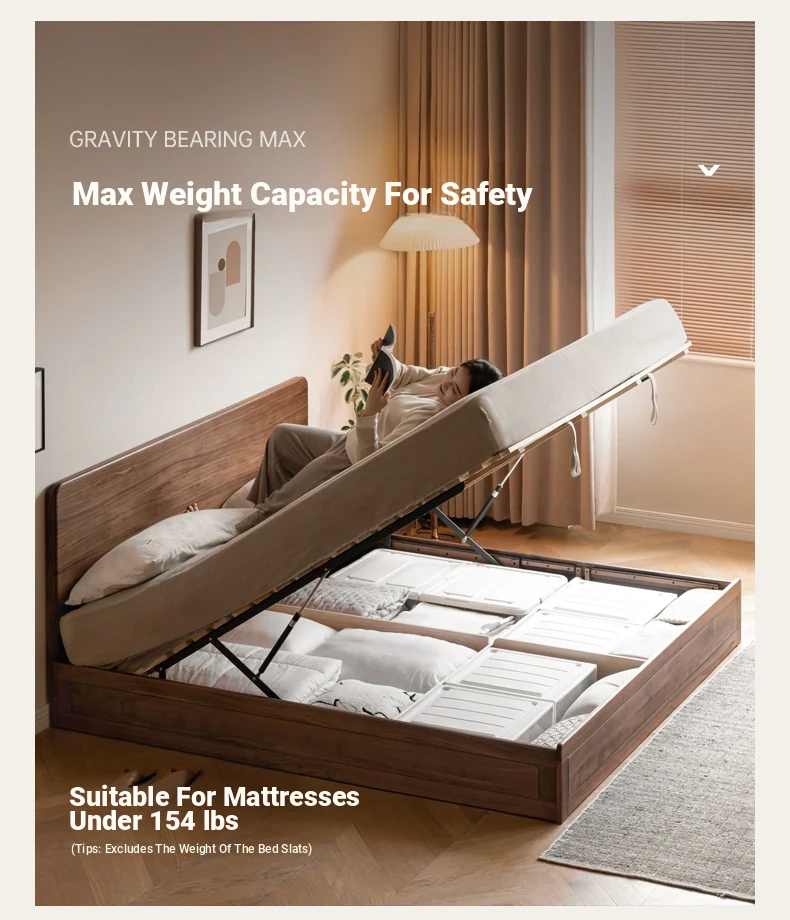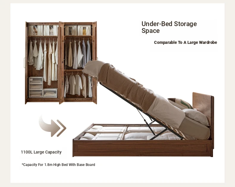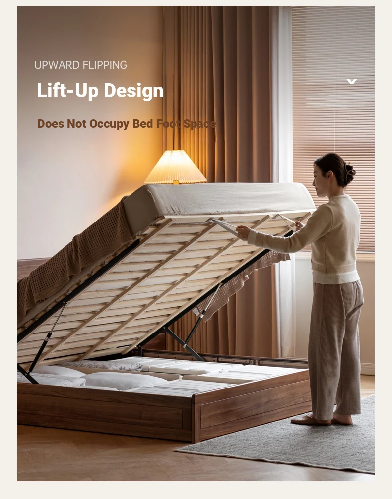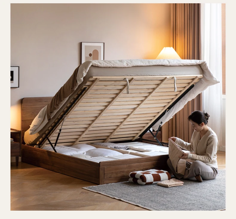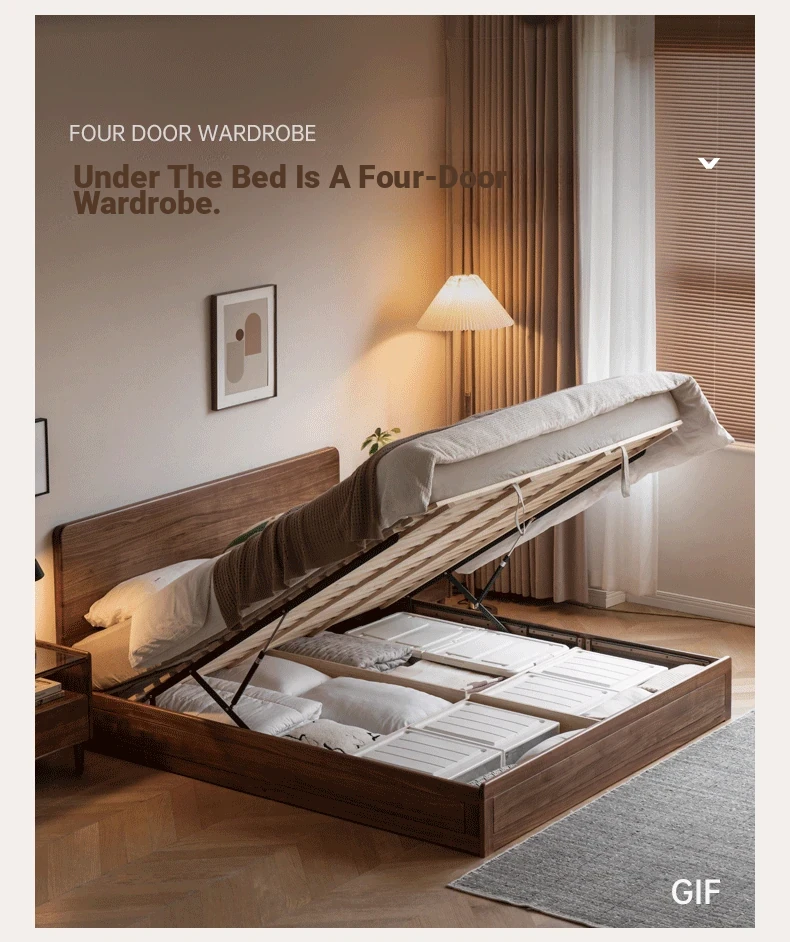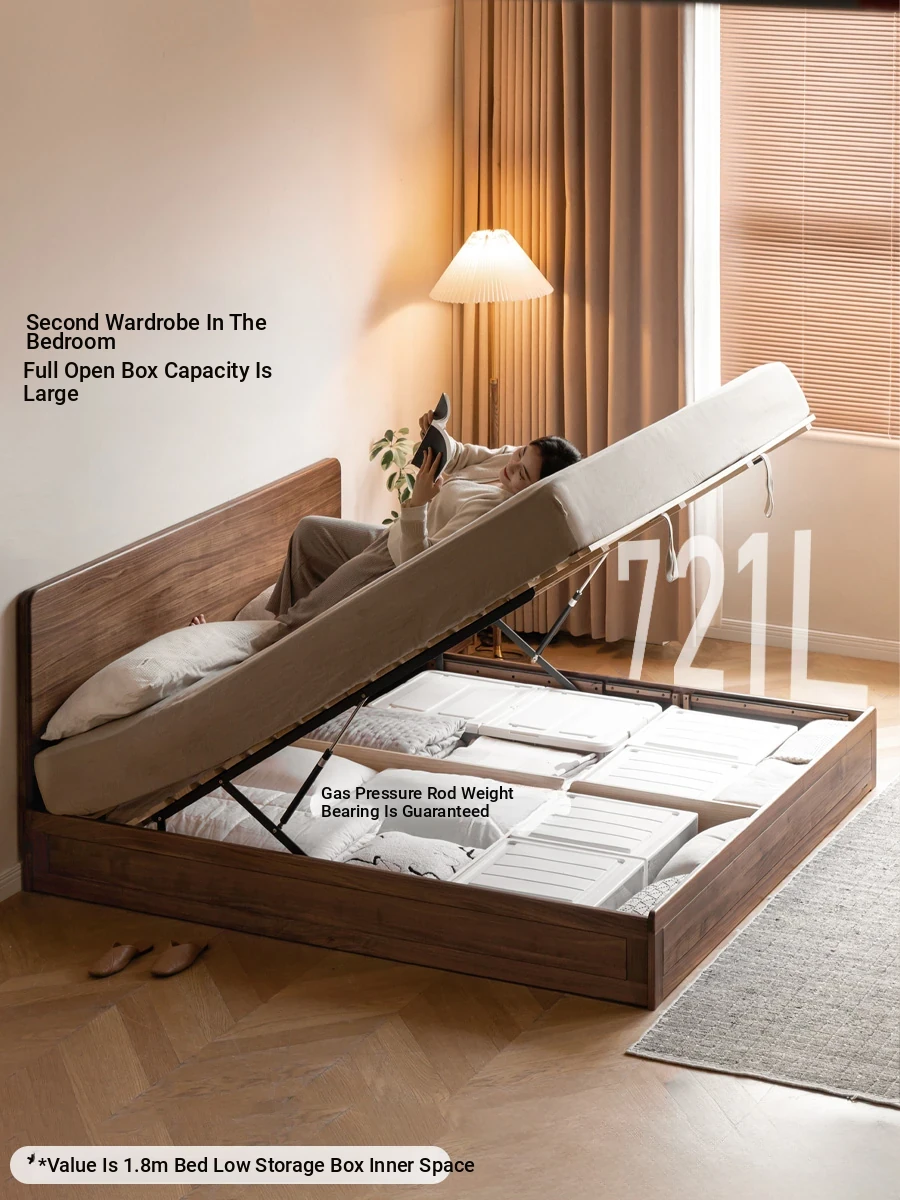 GeShi MuYu Modern Solid Wood Bed - Stylish Black Walnut Gas Lift Storage Bed for Small Spaces, Ideal for Organized Living with Ample Storage Solutions.