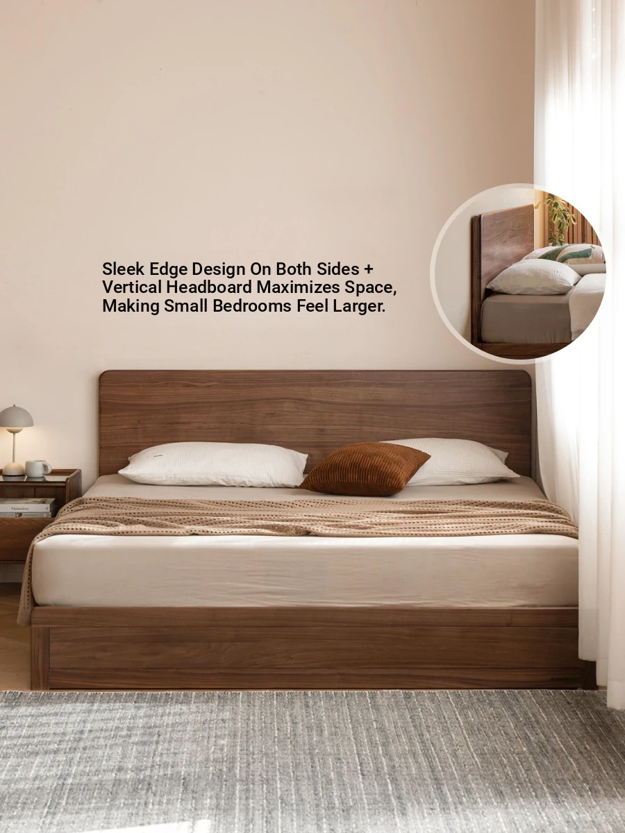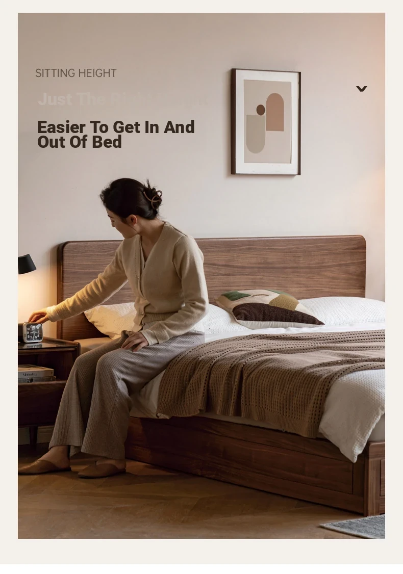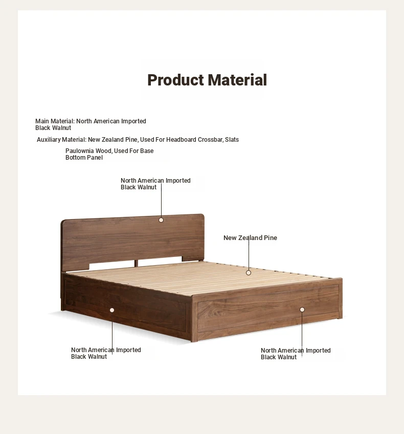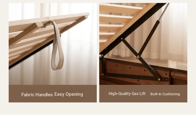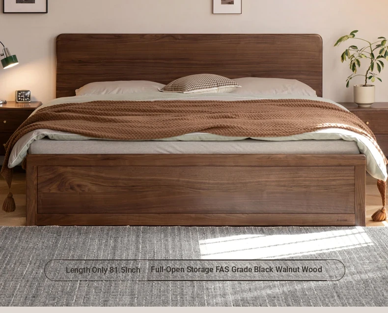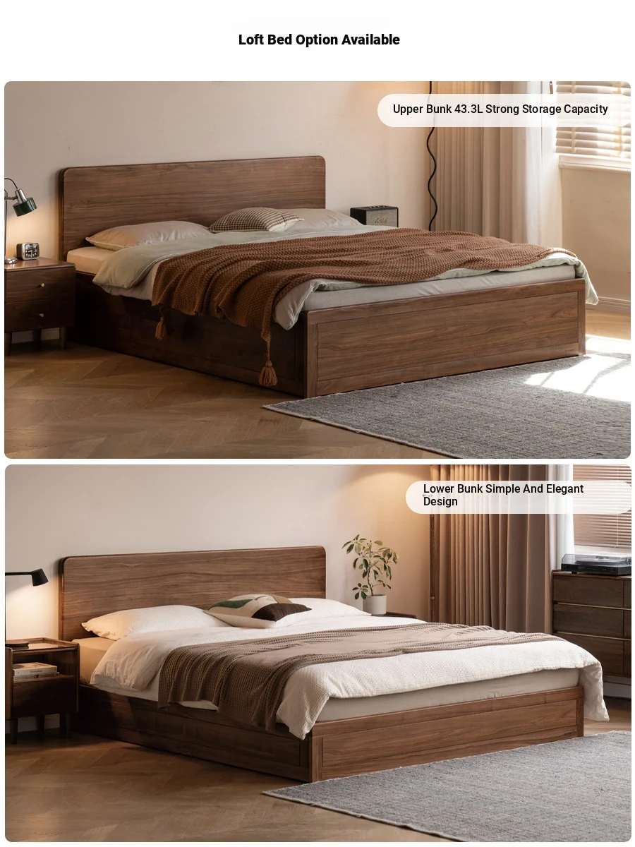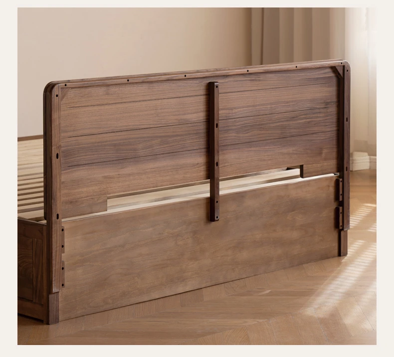 GeShi MuYu Modern Solid Wood Bed - Stylish Black Walnut Gas Lift Storage Bed for Small Spaces, Ideal for Organized Living with Ample Storage Solutions.