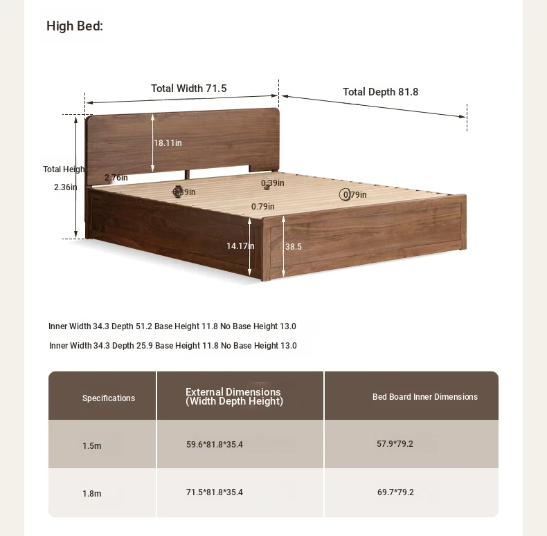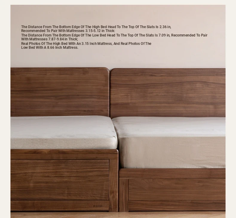 (5)(black walnut) high-rise (no bottom plate) box bed + mattress (3.15in thick J76 hard H2)K35B31