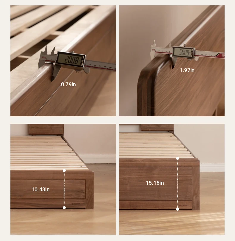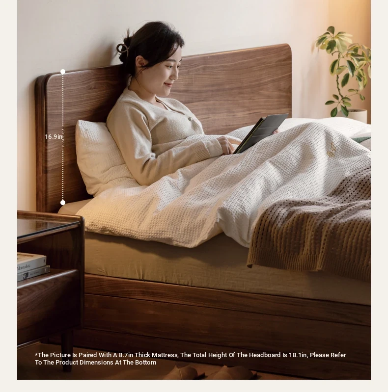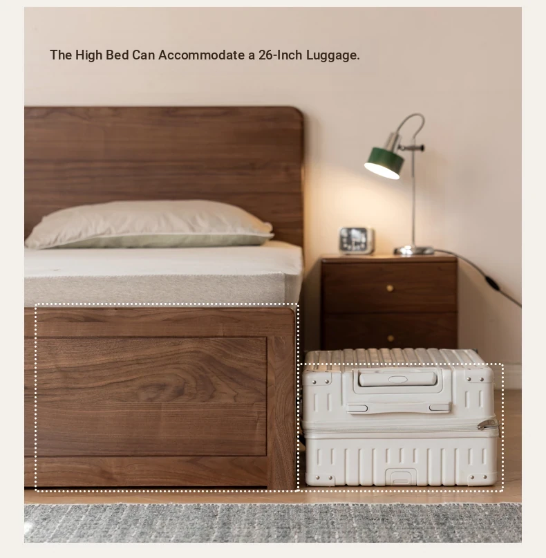 (6)(black walnut) high-rise (with bottom plate) box bed + mattress (3.15in thick J76 hard H2)K35B31