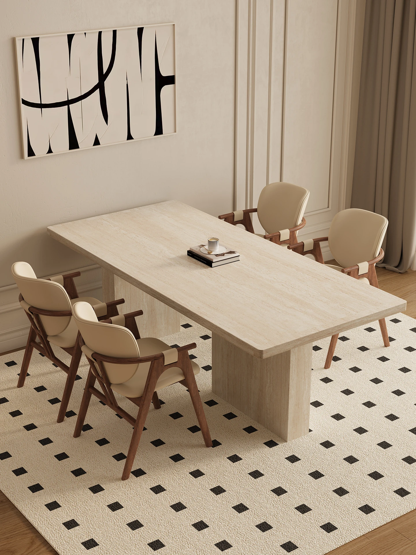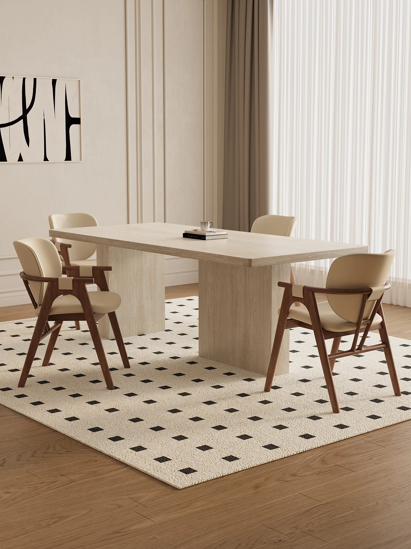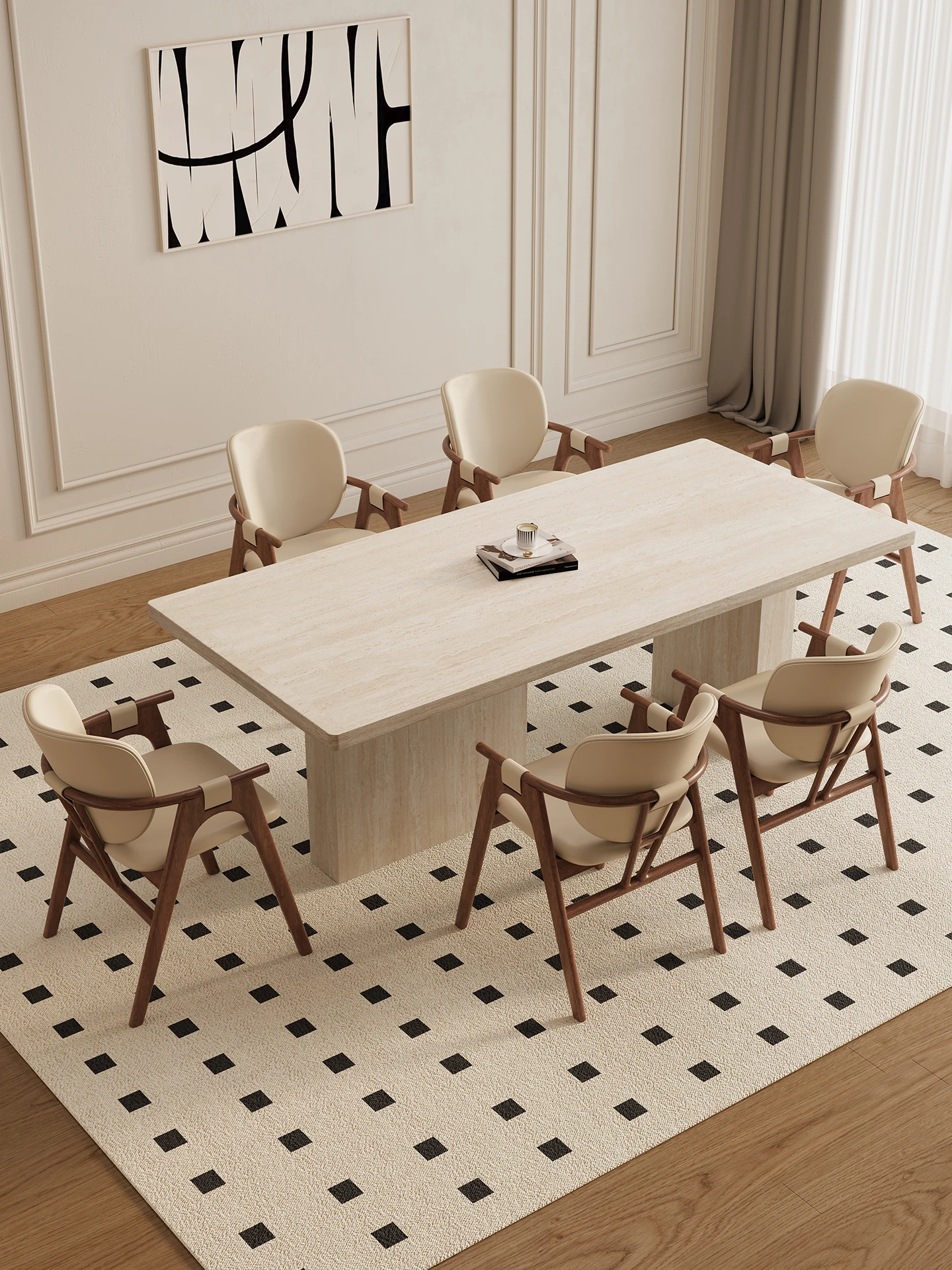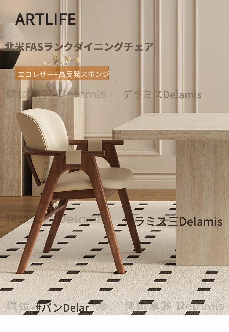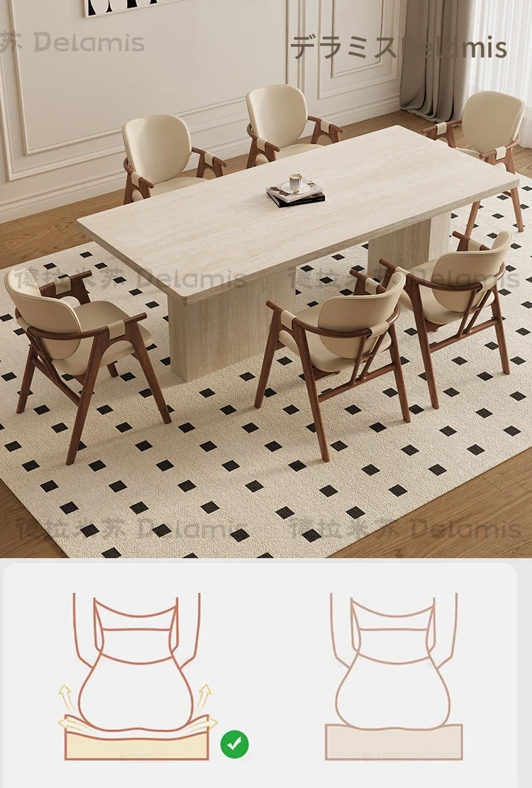 フレンチクリーム風デザインの無垢材ダイニングチェア—天然木の背もたれ付き、リラックスできるスタイル。デザイナーによる家用ダイニングテーブル用のラグジュアリーなソフトパッケージチェア。