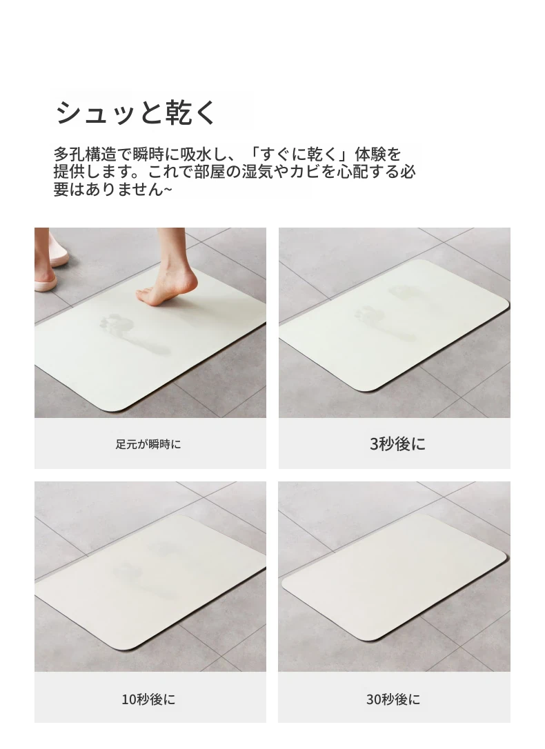 源氏木语 シリカゲルマット シンプルなバスルーム用 吸水性抜群 滑り止め付 ドアマット おしゃれな玄関に最適!