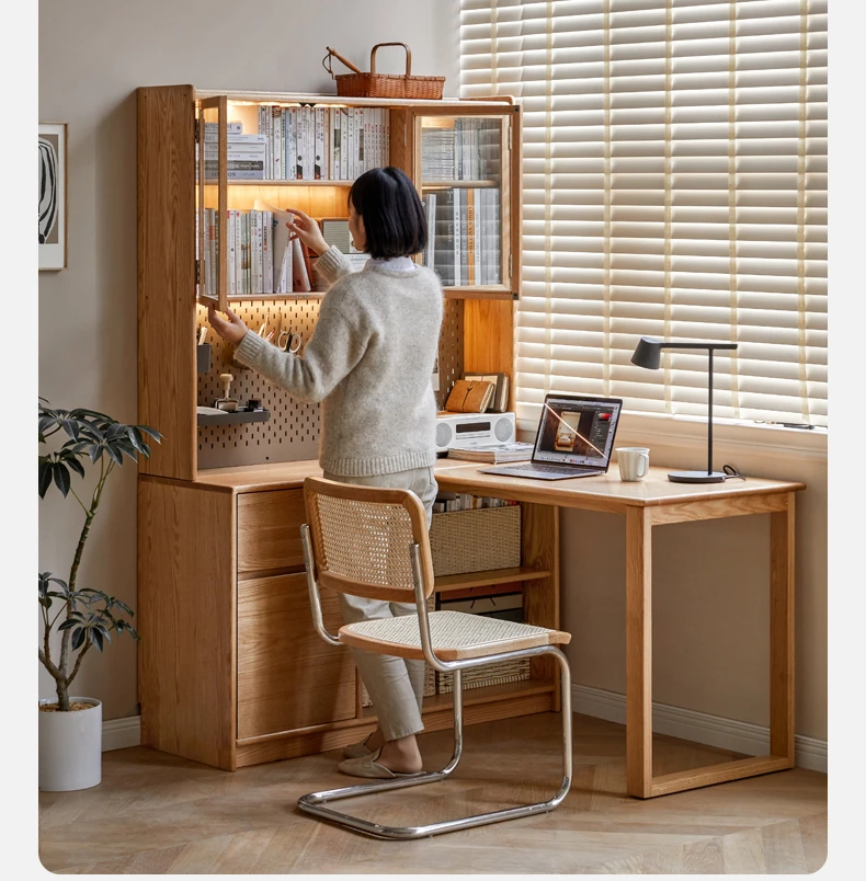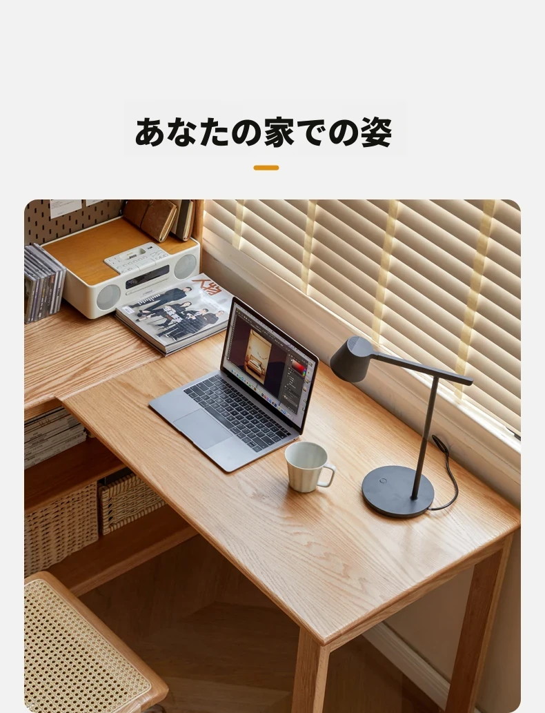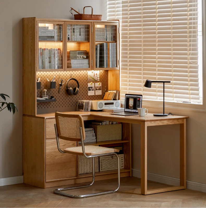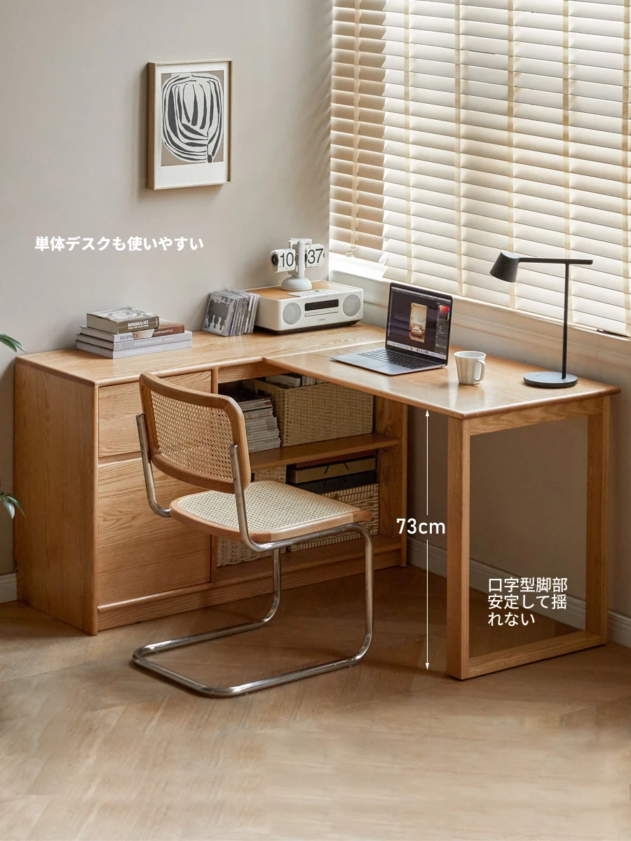 源氏木语の無垢材デスク&シェルフ一体型コーナーデスク | スタイリッシュでシンプルな家庭用学習デスク | モダンオフィスにも最適な書斎用家具