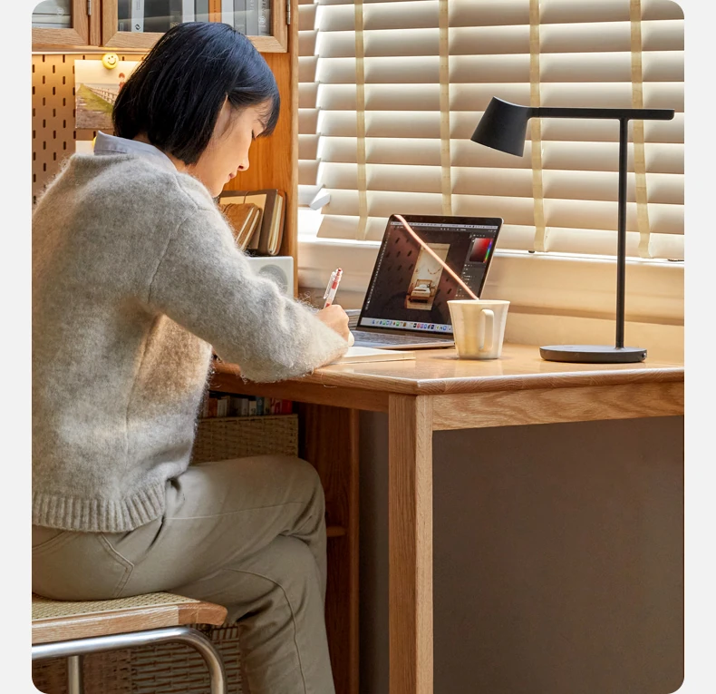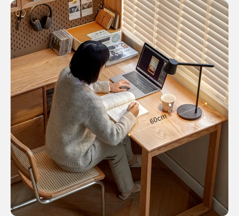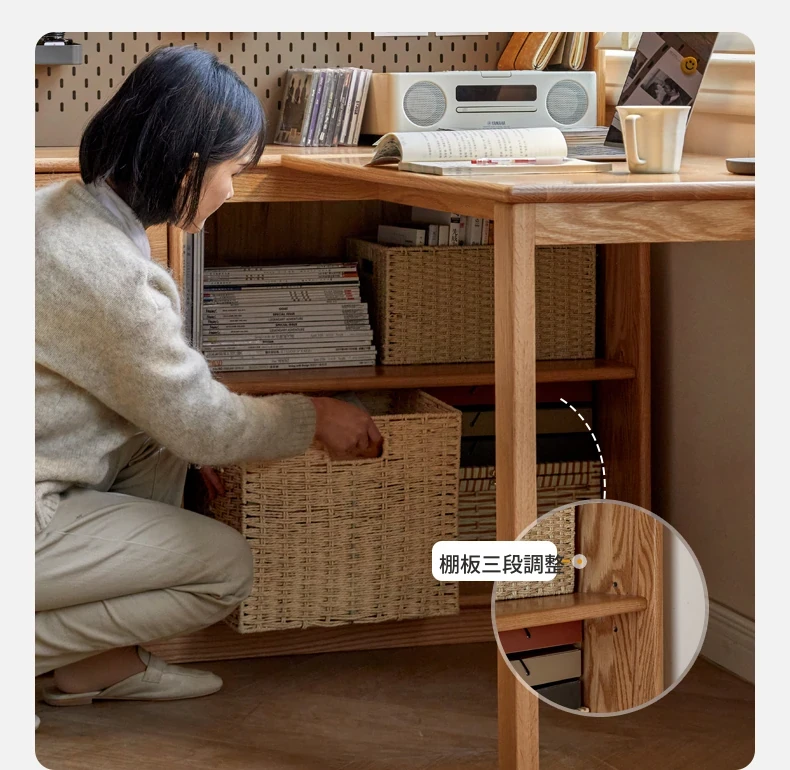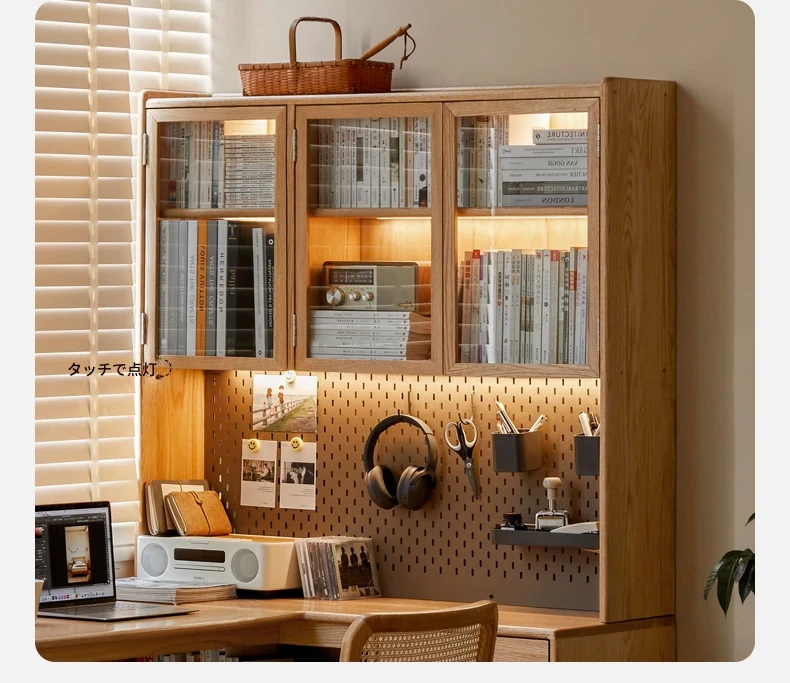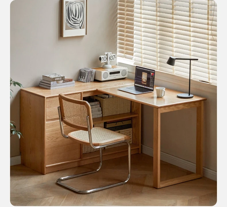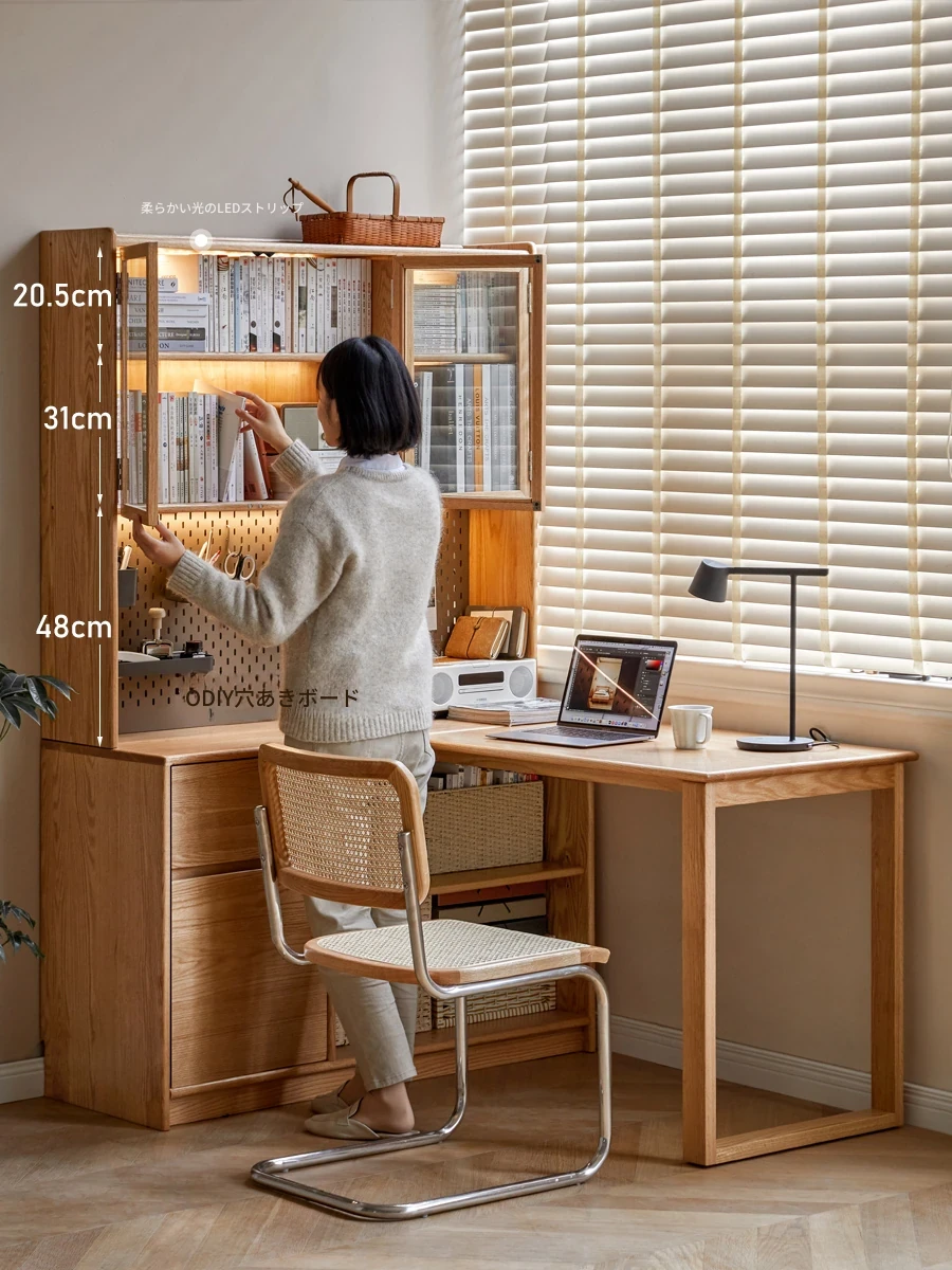 源氏木语の無垢材デスク&シェルフ一体型コーナーデスク | スタイリッシュでシンプルな家庭用学習デスク | モダンオフィスにも最適な書斎用家具