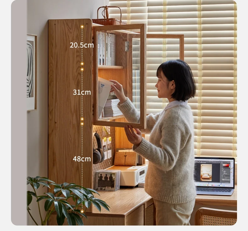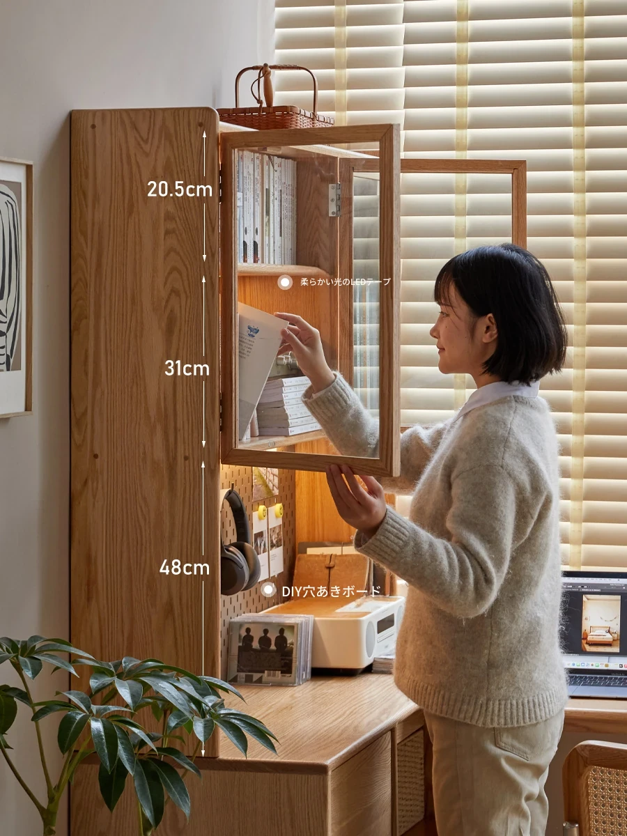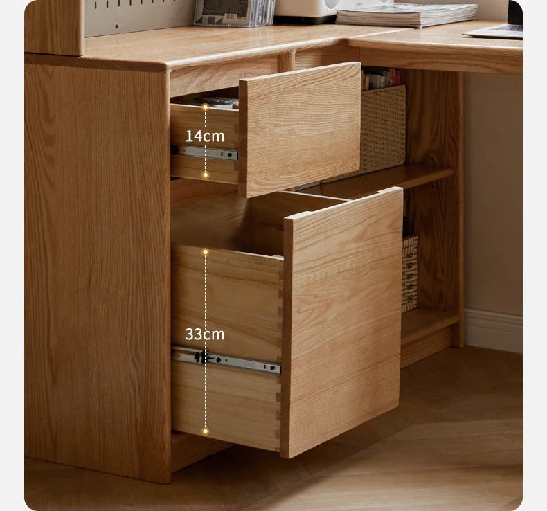 (水曲柳原木色)1.4メートル左角デスク+上棚(1400*1200*1825mm)Y342X08