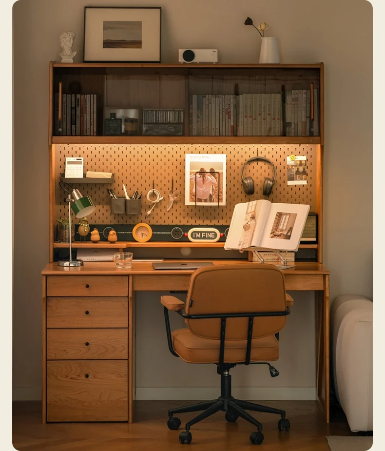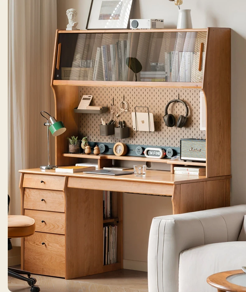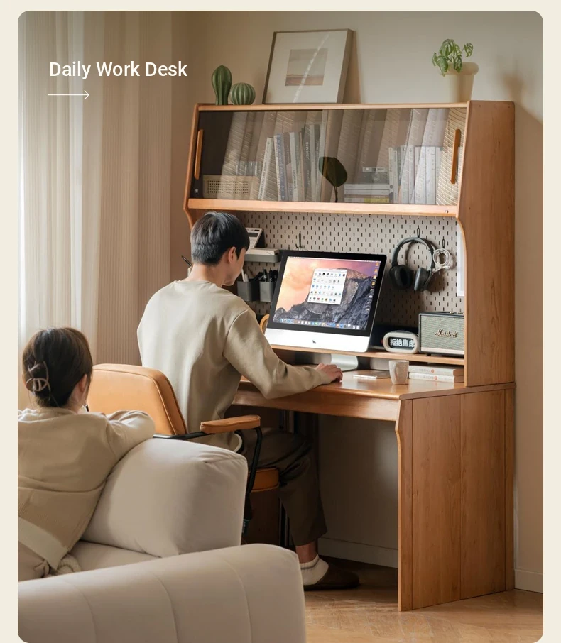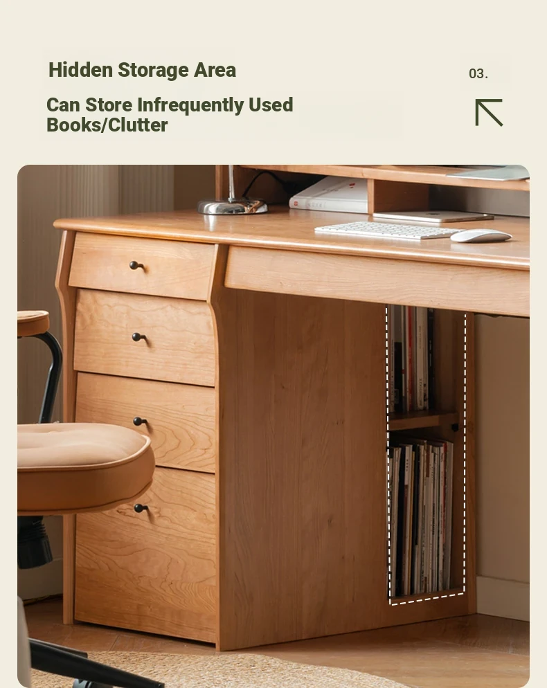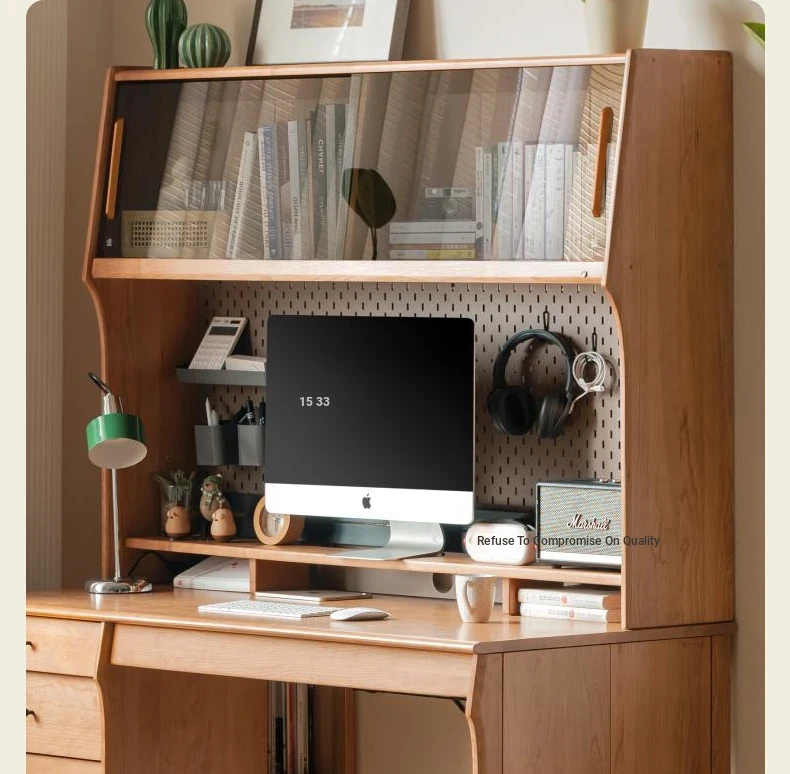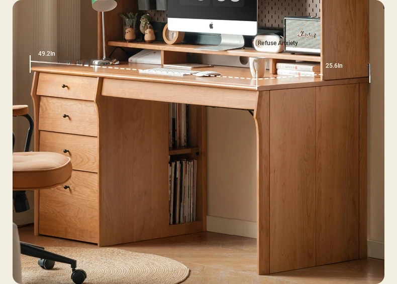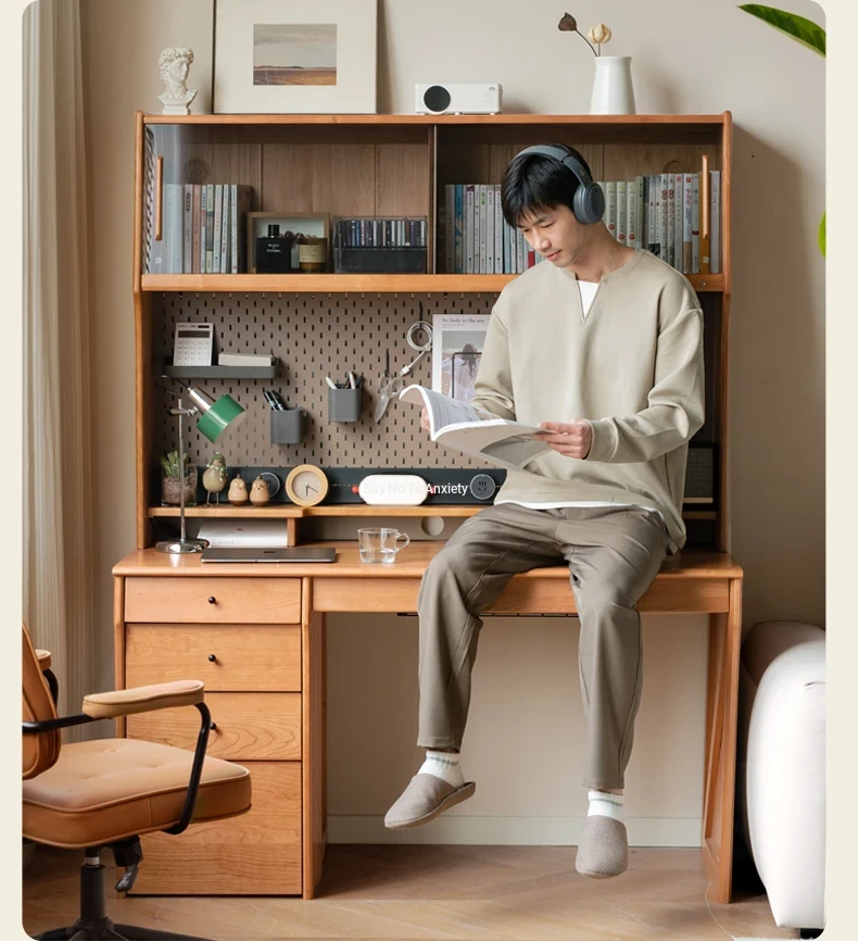 Genji Mu Yu Solid Wood Desk and Bookshelf Combo - Multifunctional Cherry Wood Office Computer Desk for Home and Study