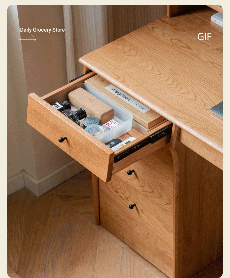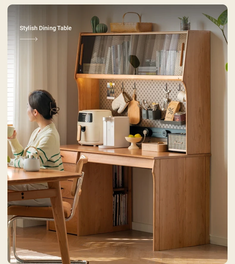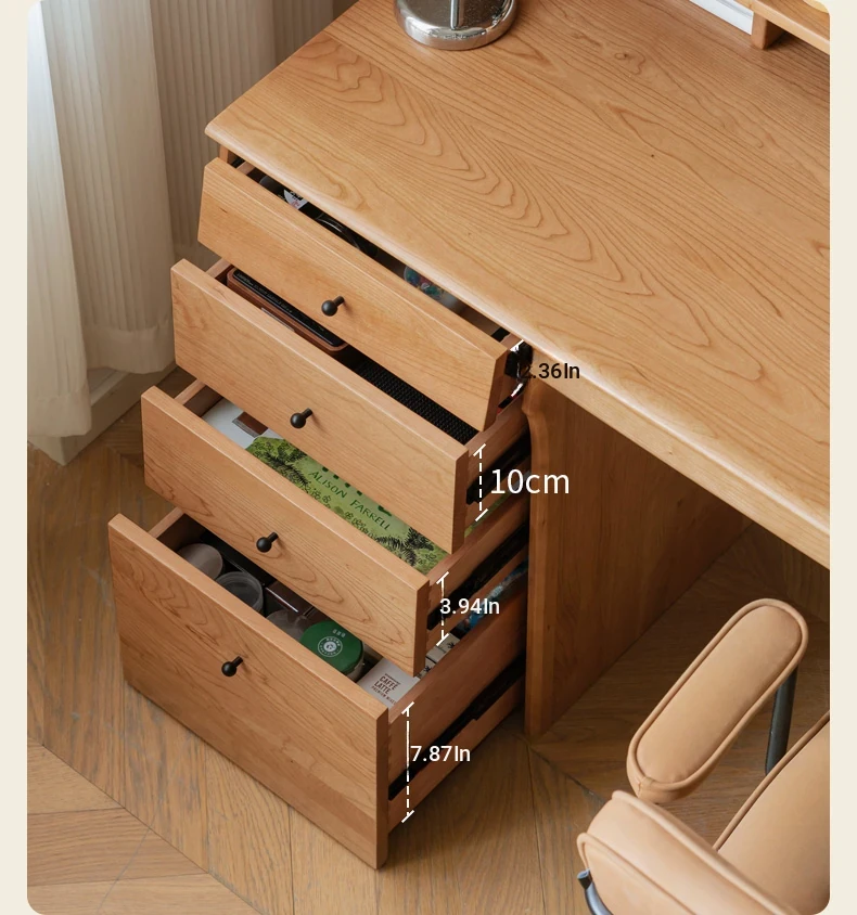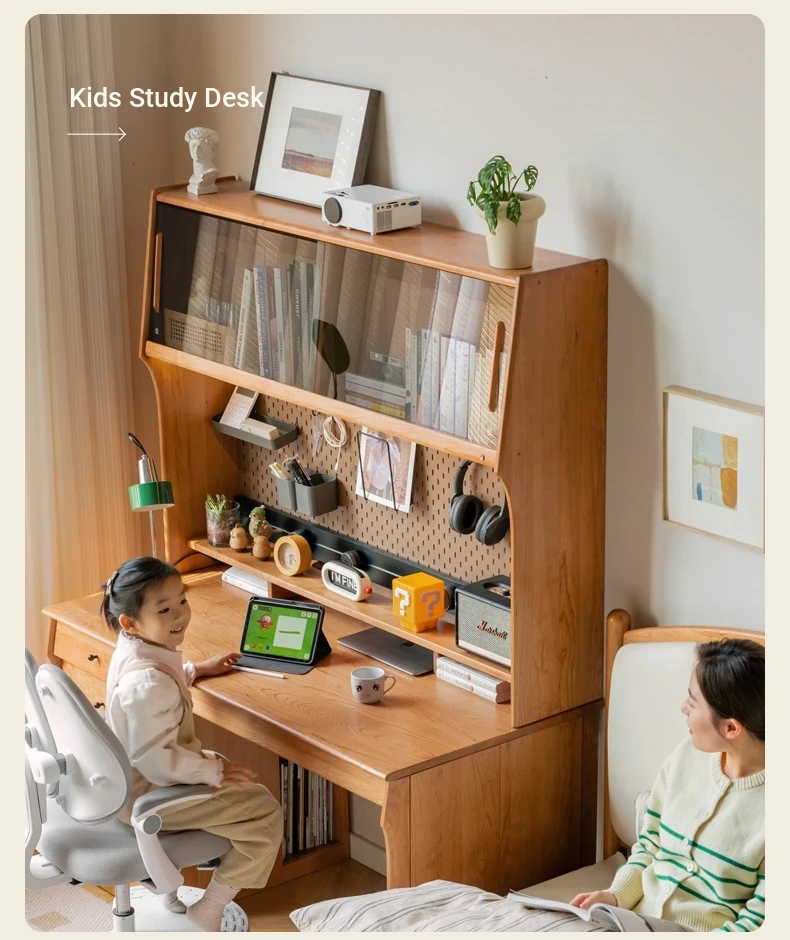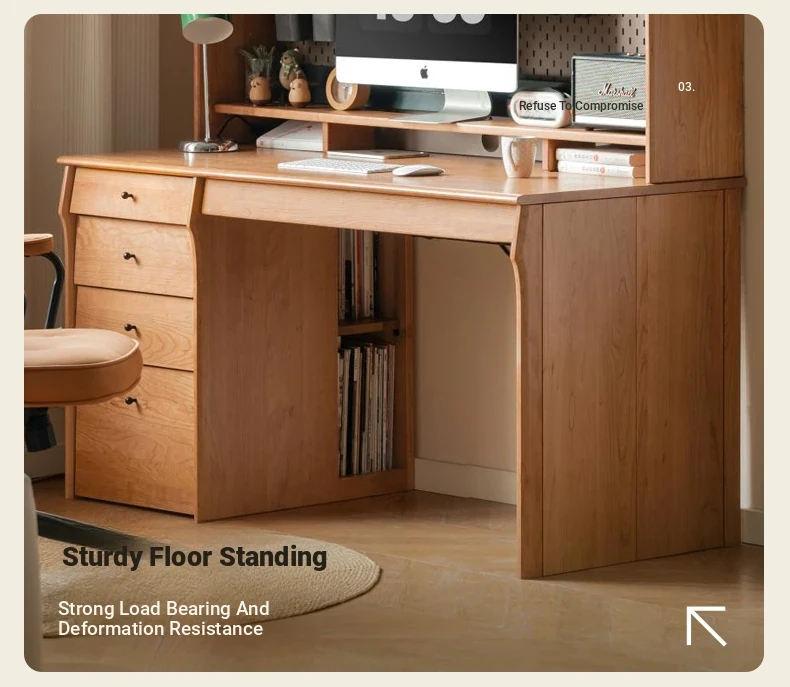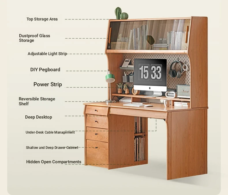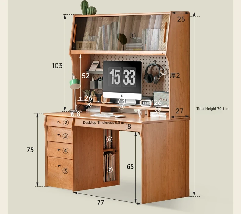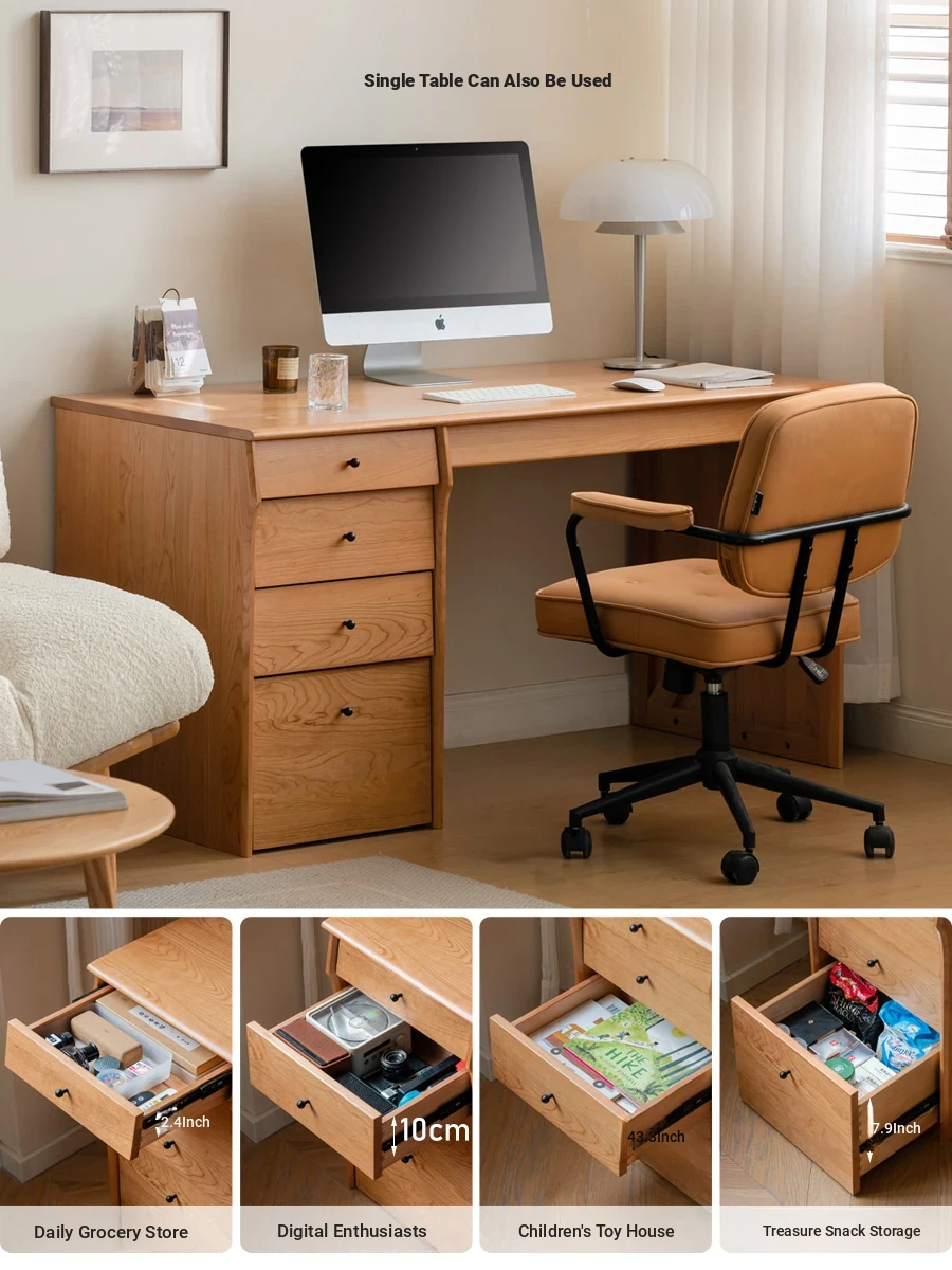 Genji Mu Yu Solid Wood Desk and Bookshelf Combo - Multifunctional Cherry Wood Office Computer Desk for Home and Study