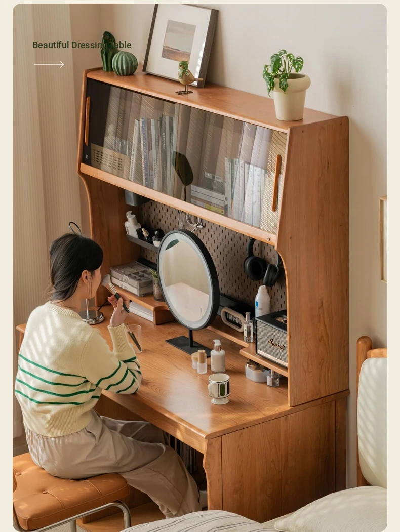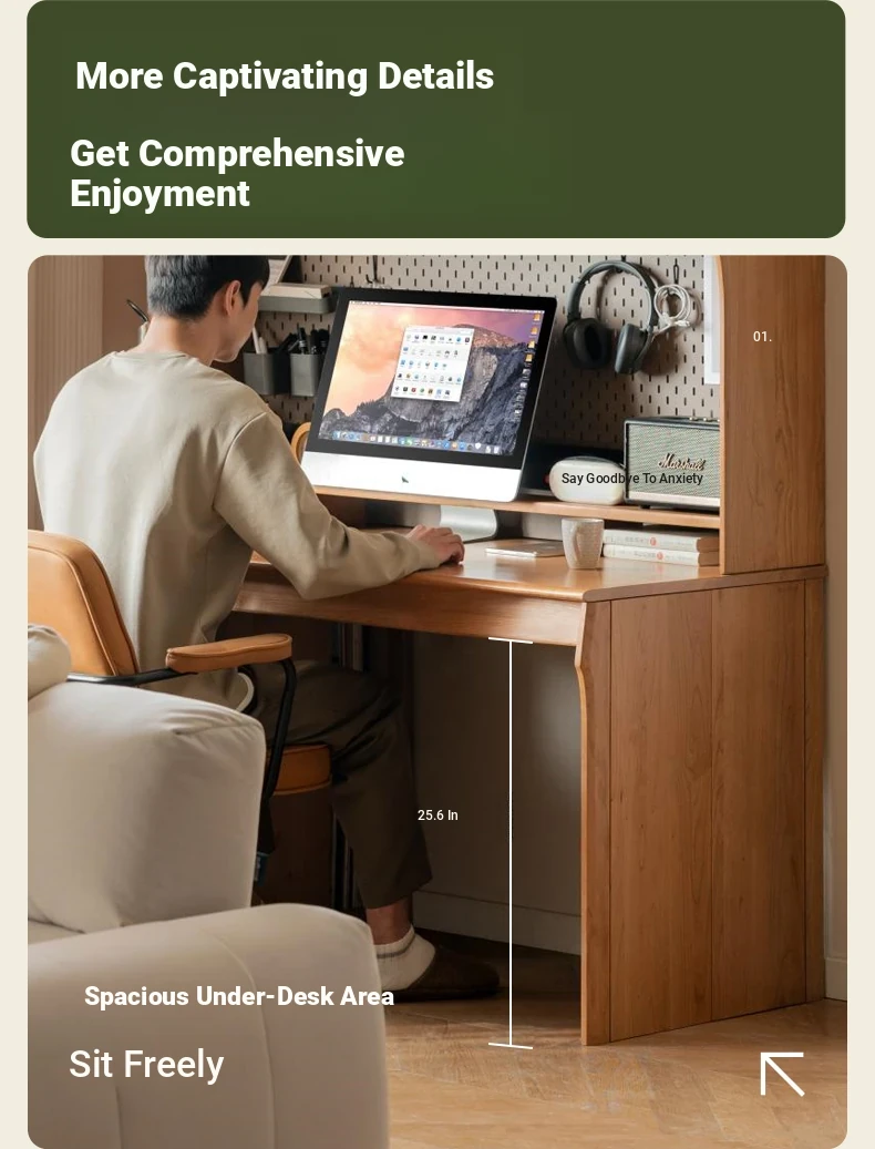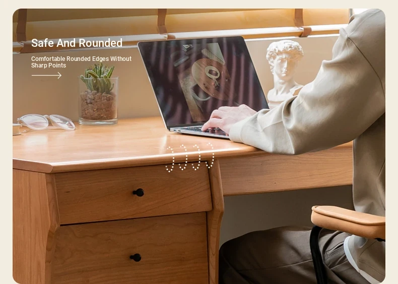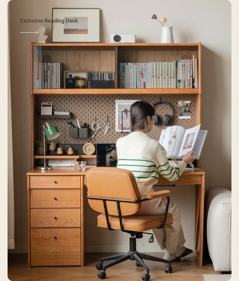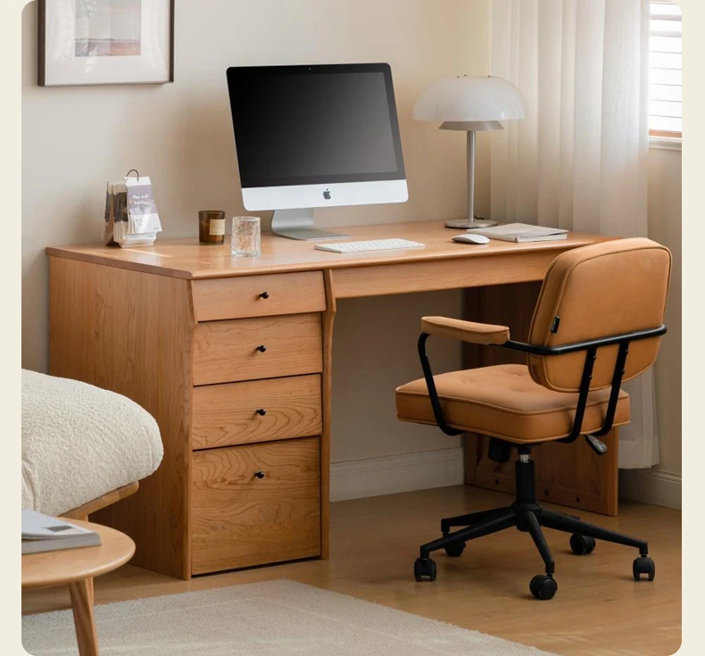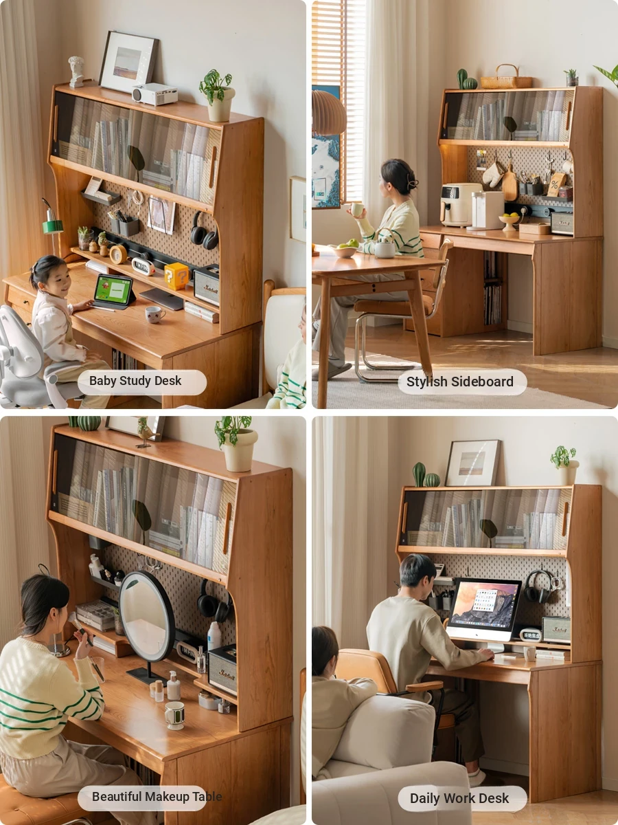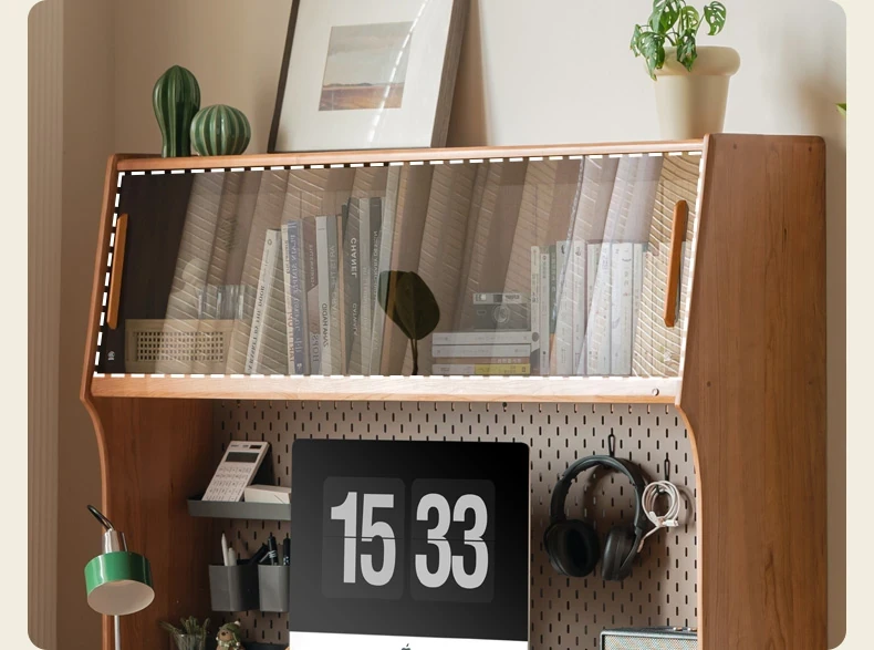 Genji Mu Yu Solid Wood Desk and Bookshelf Combo - Multifunctional Cherry Wood Office Computer Desk for Home and Study