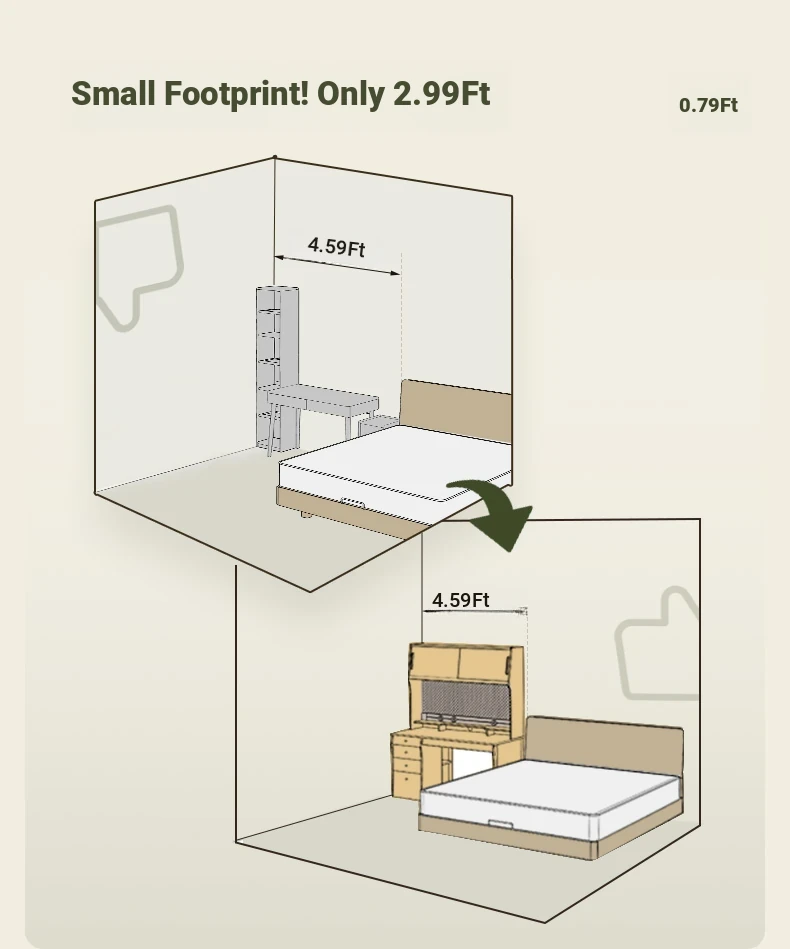 55.12 in desk + shelf (55.12in*25.59in*70.08in) Y102X14