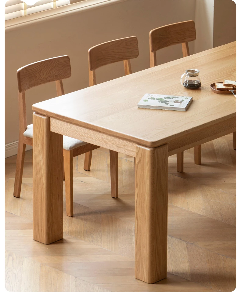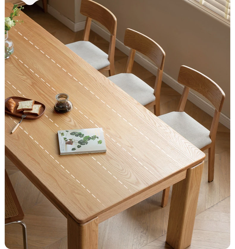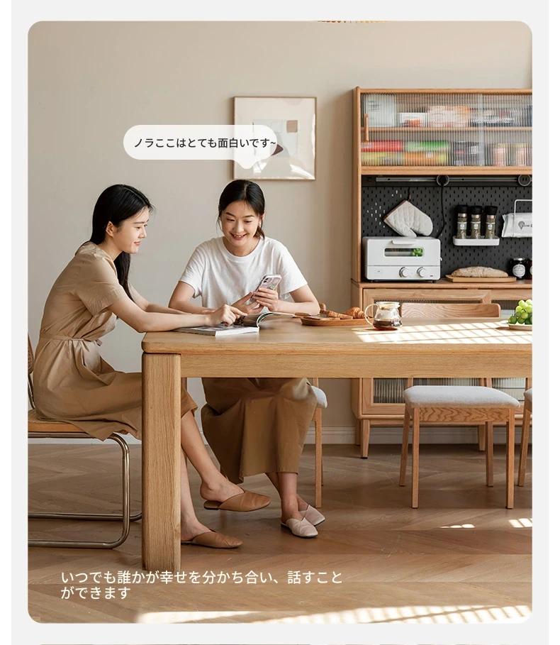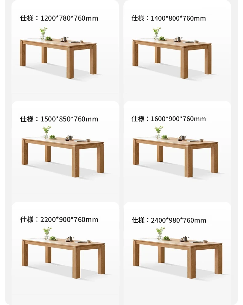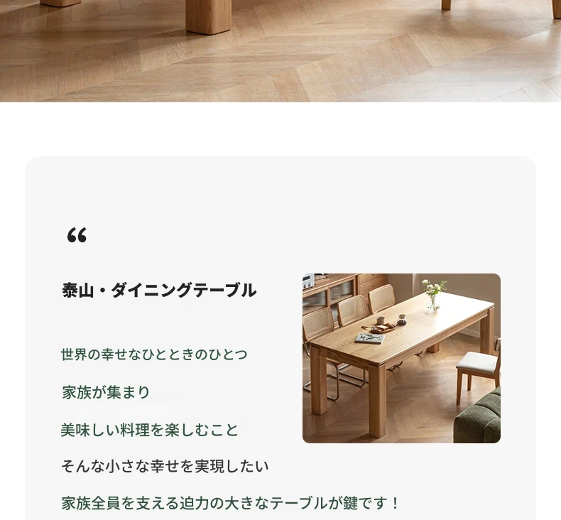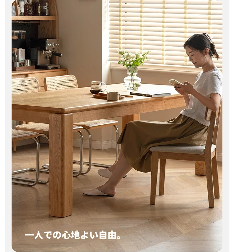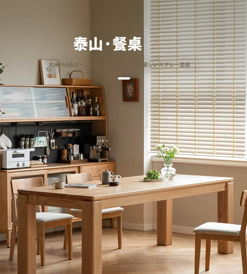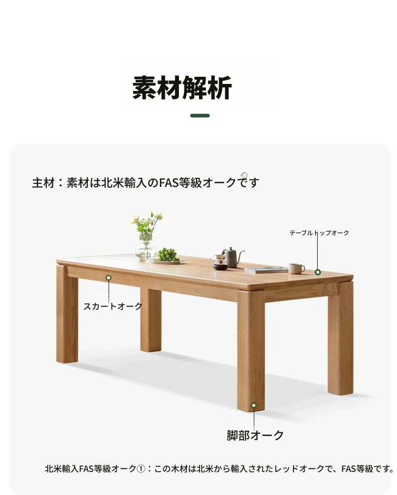 源氏木语 北欧スタイル 無垢材ダイニングテーブル - モダンでシンプル、オーク素材の大きなテーブルで、家庭向けの食事を豊かにする理想的な選択!