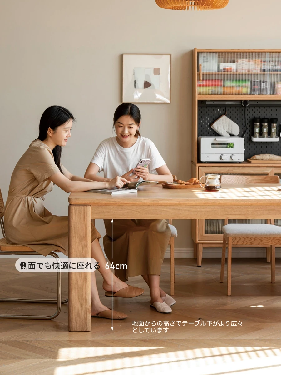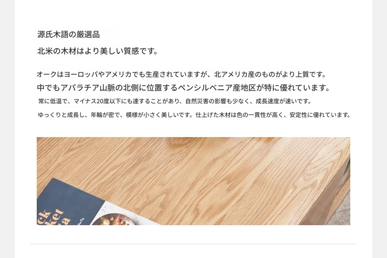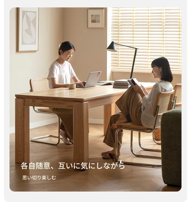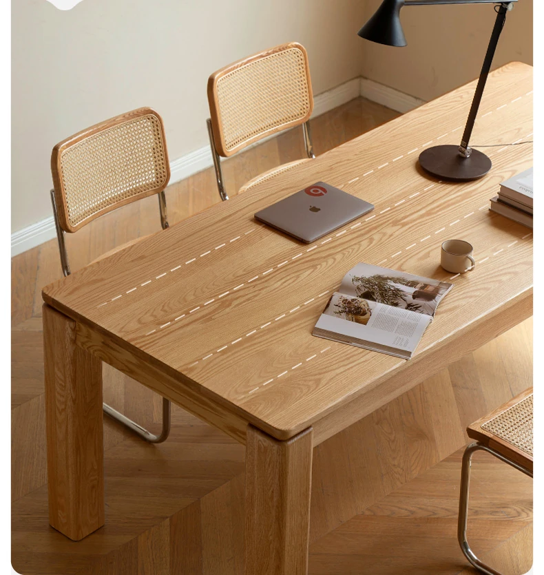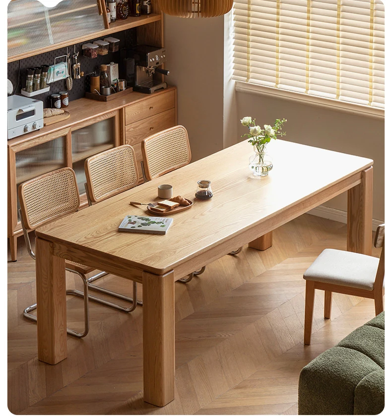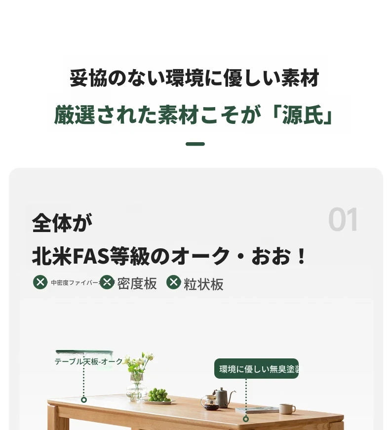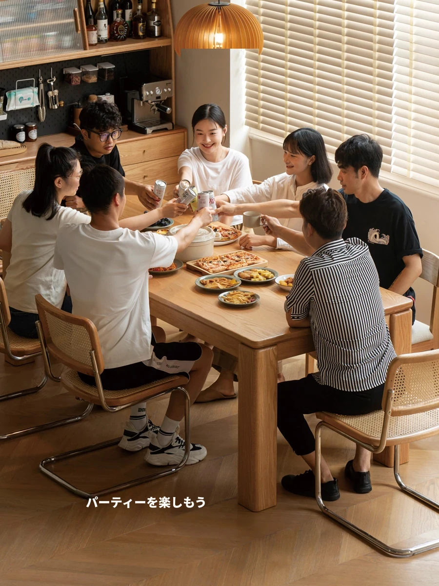 源氏木语 北欧スタイル 無垢材ダイニングテーブル - モダンでシンプル、オーク素材の大きなテーブルで、家庭向けの食事を豊かにする理想的な選択!