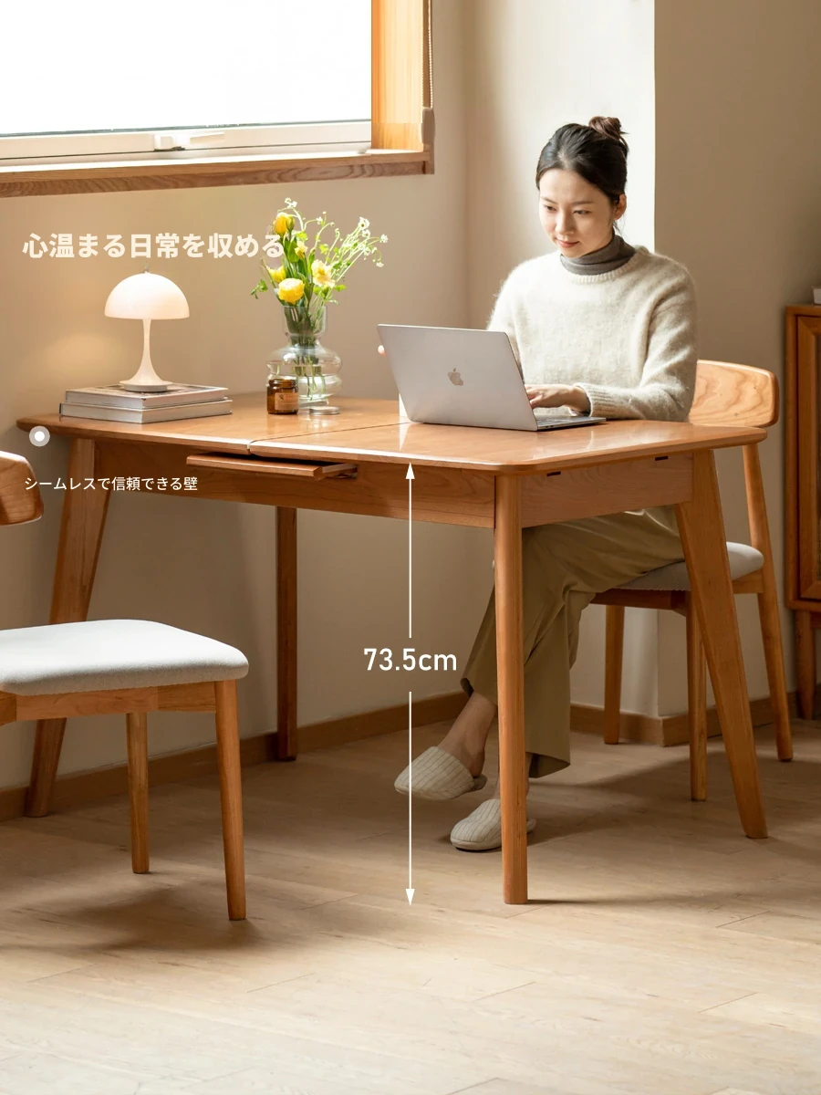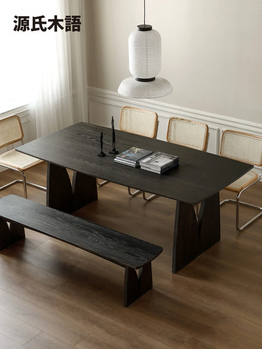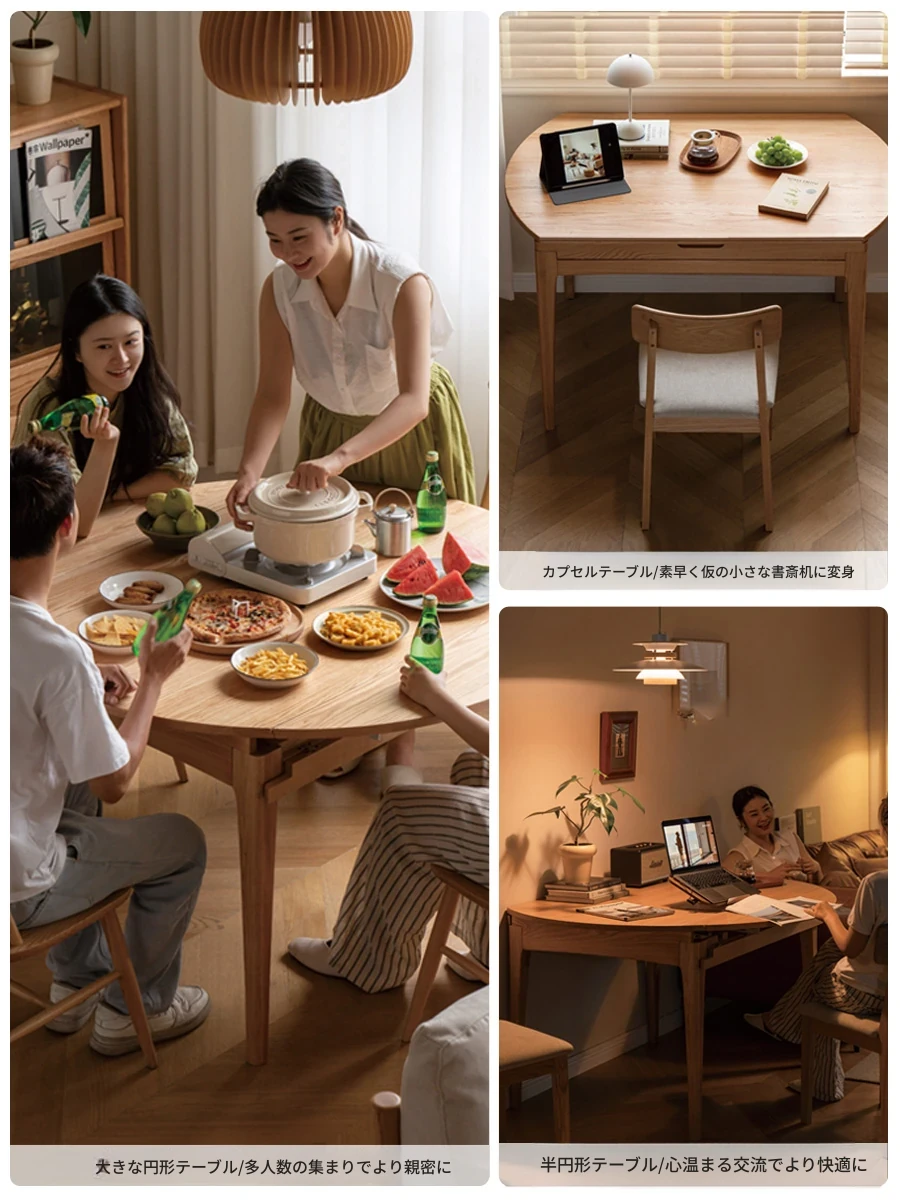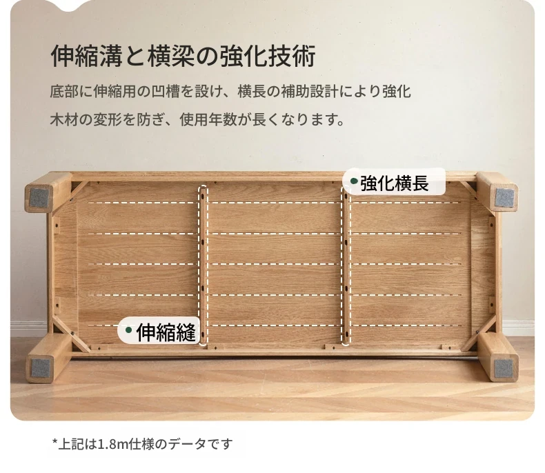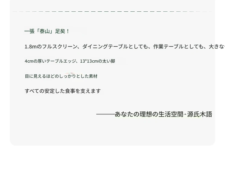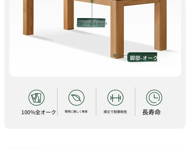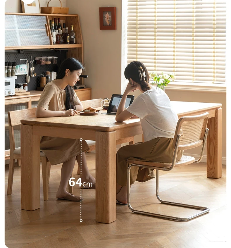 源氏木语 北欧スタイル 無垢材ダイニングテーブル - モダンでシンプル、オーク素材の大きなテーブルで、家庭向けの食事を豊かにする理想的な選択!