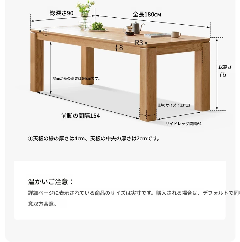 (水曲柳ナチュラルカラー)1.8メートルダイニングテーブル(1800*900*760mm)Y343R04