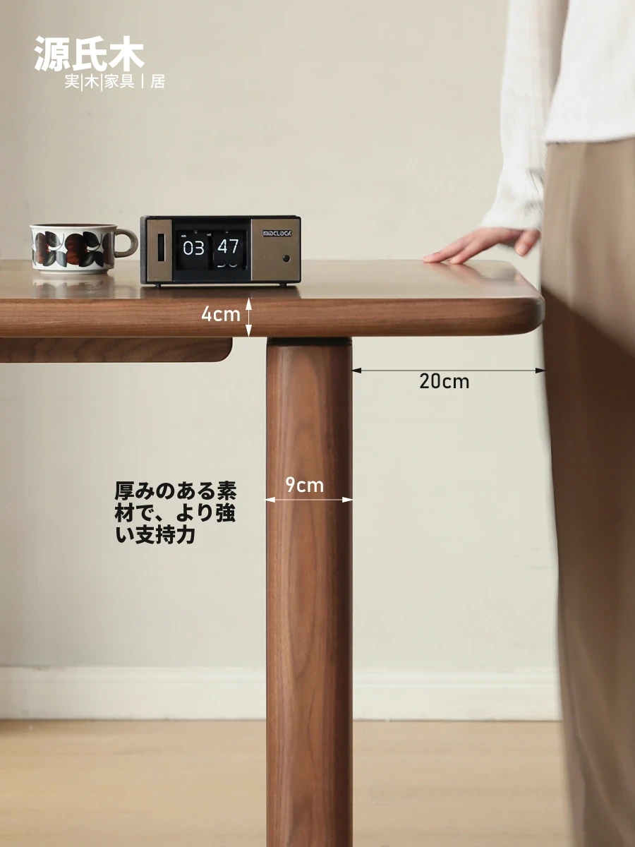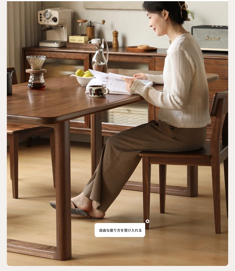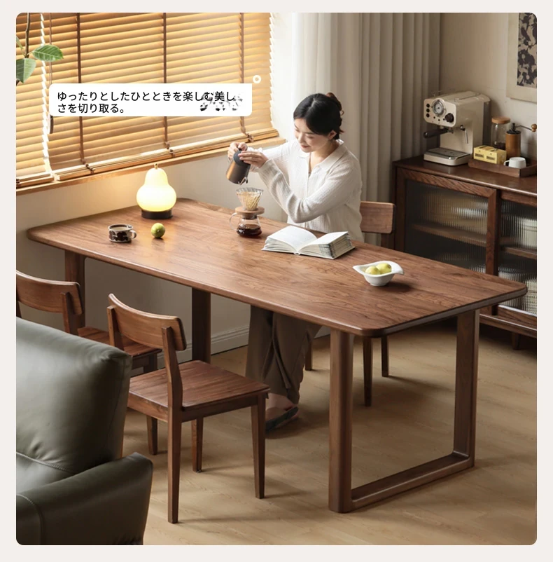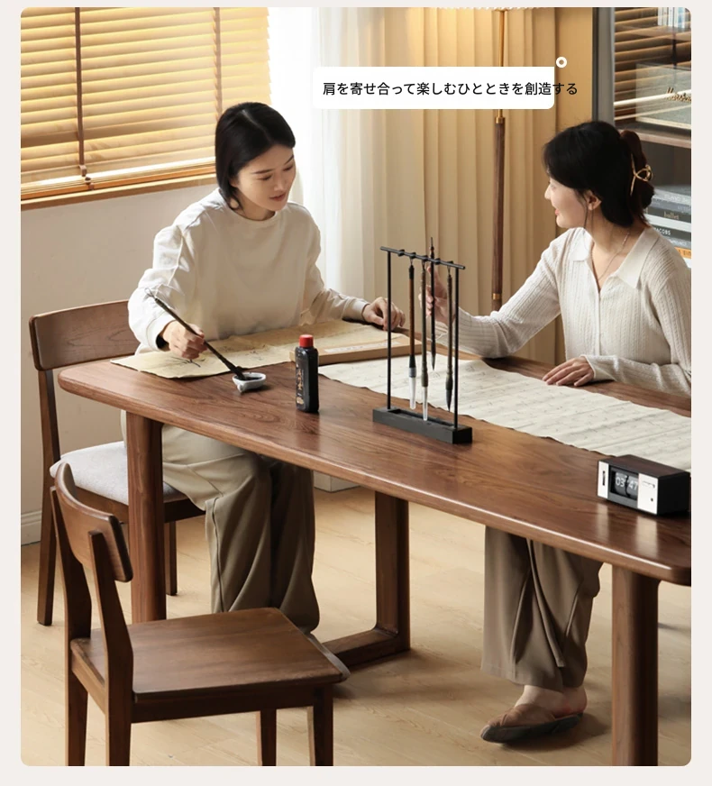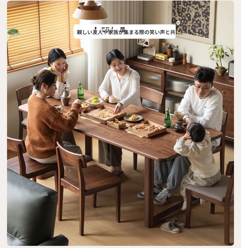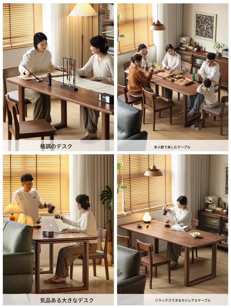 源氏木语全実木大板テーブル|高級ブラックウォールナット製のダイニングテーブル|家庭用・オフィス用|スタイリッシュで耐久性抜群、壁に寄せられるデザインでスペースを有効活用!