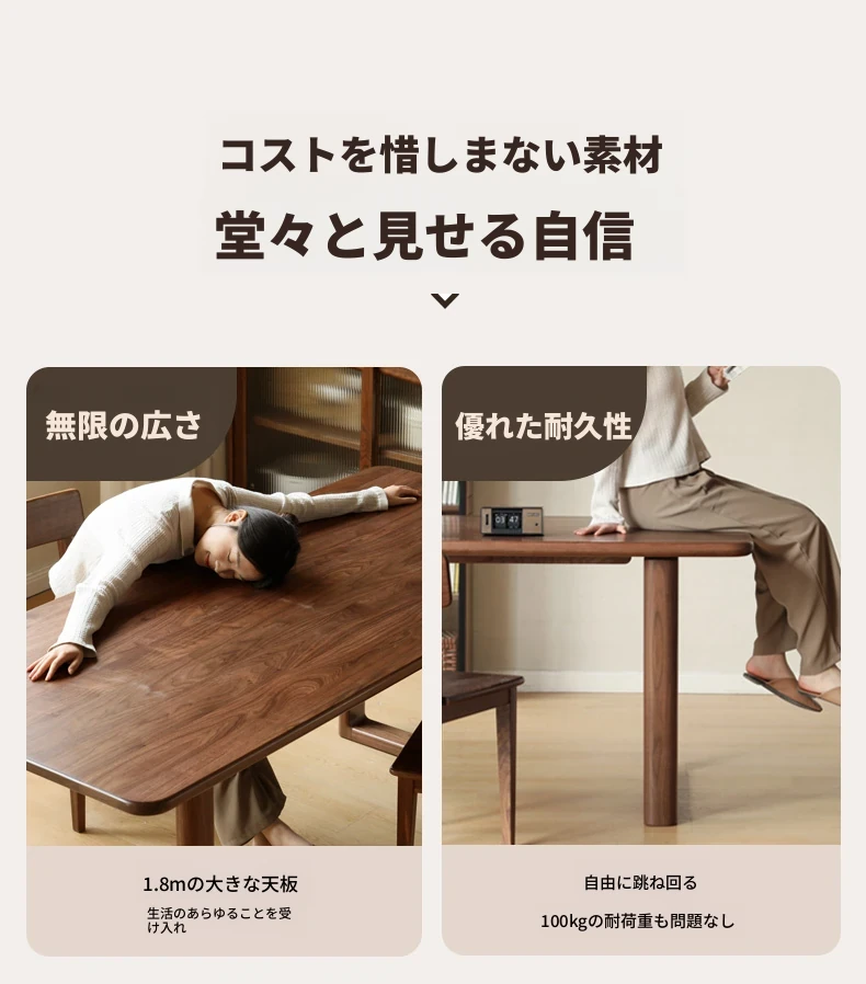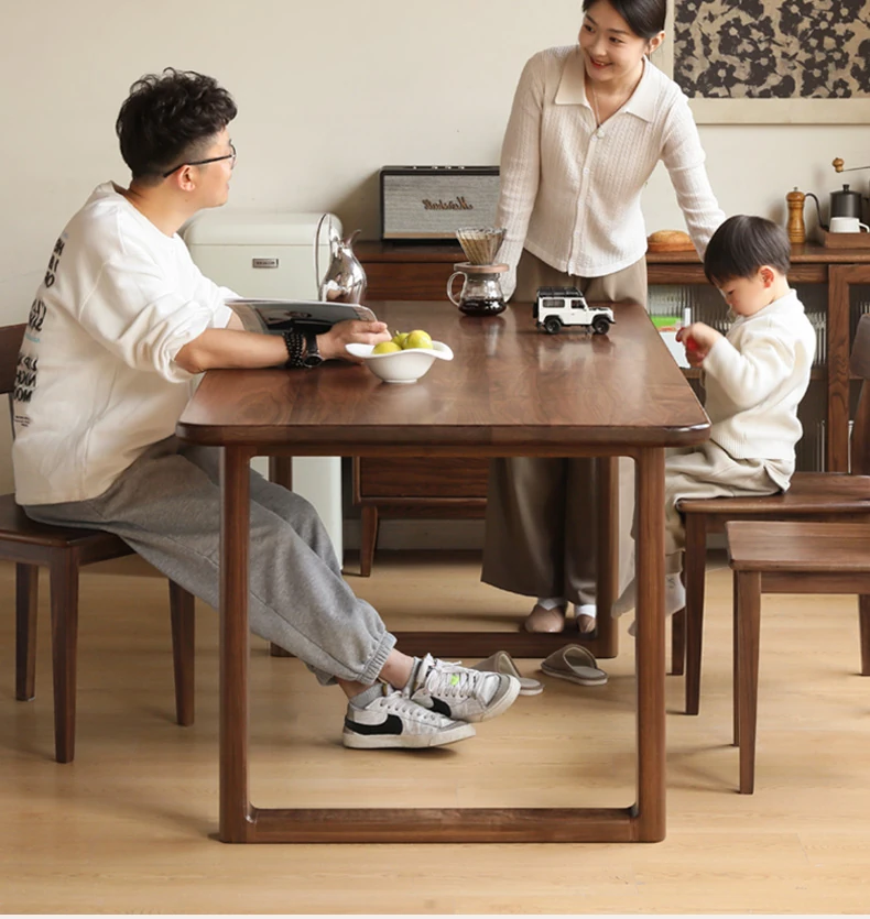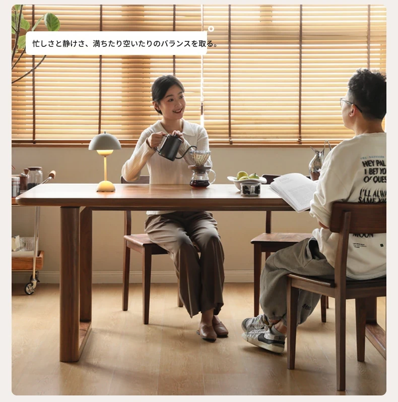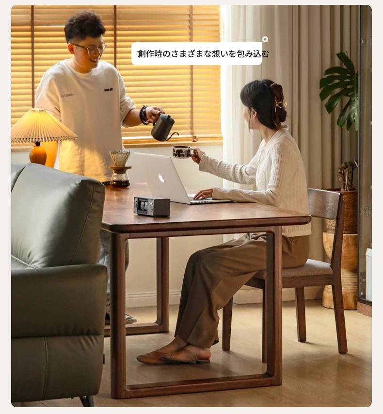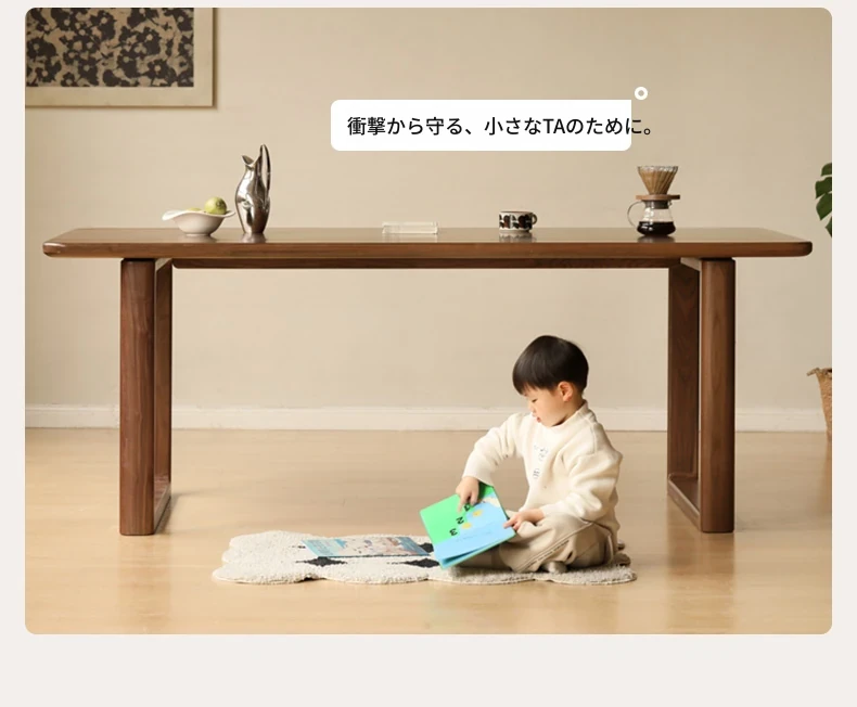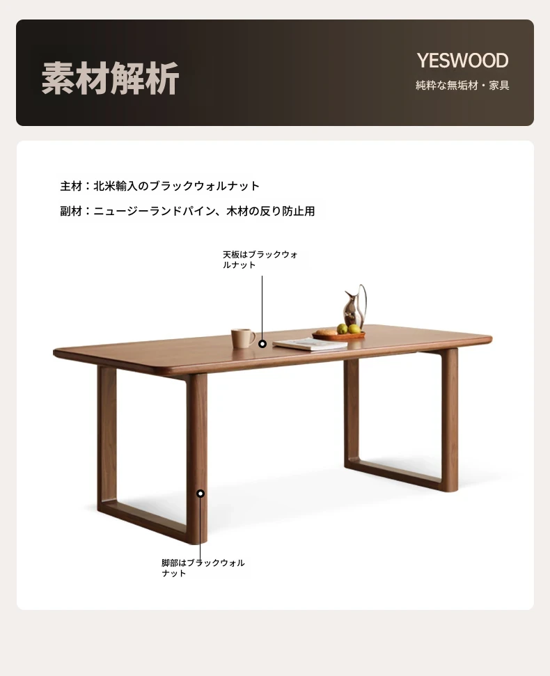 源氏木语全実木大板テーブル|高級ブラックウォールナット製のダイニングテーブル|家庭用・オフィス用|スタイリッシュで耐久性抜群、壁に寄せられるデザインでスペースを有効活用!