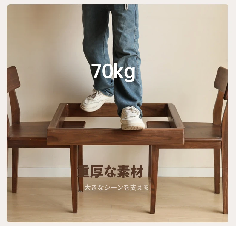 (ブラックウォールナット)2メートル テーブル1台と椅子4脚(無垢材椅子 K00S01)K35R13