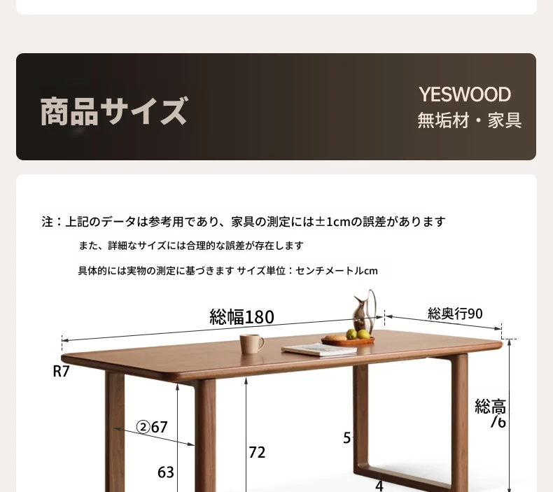 (ブラックウォールナット)1.8メートル 大板テーブル(1800*900*760mm)K35R13