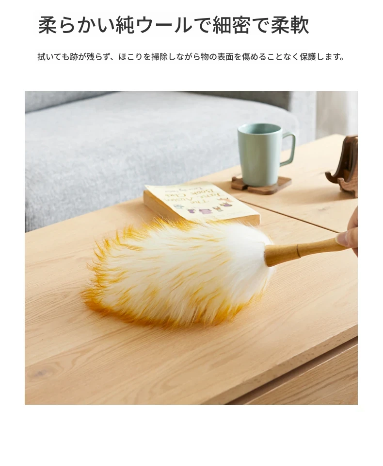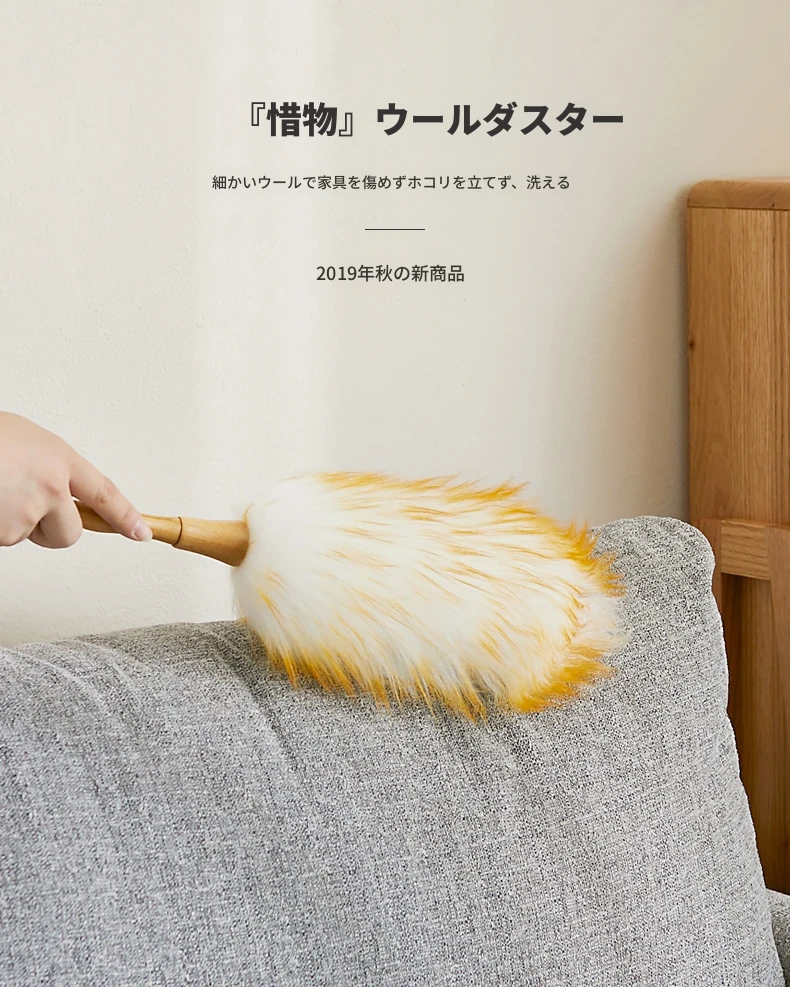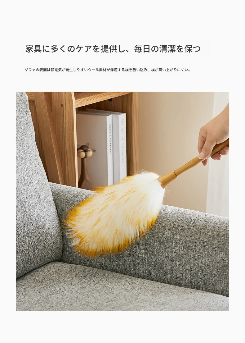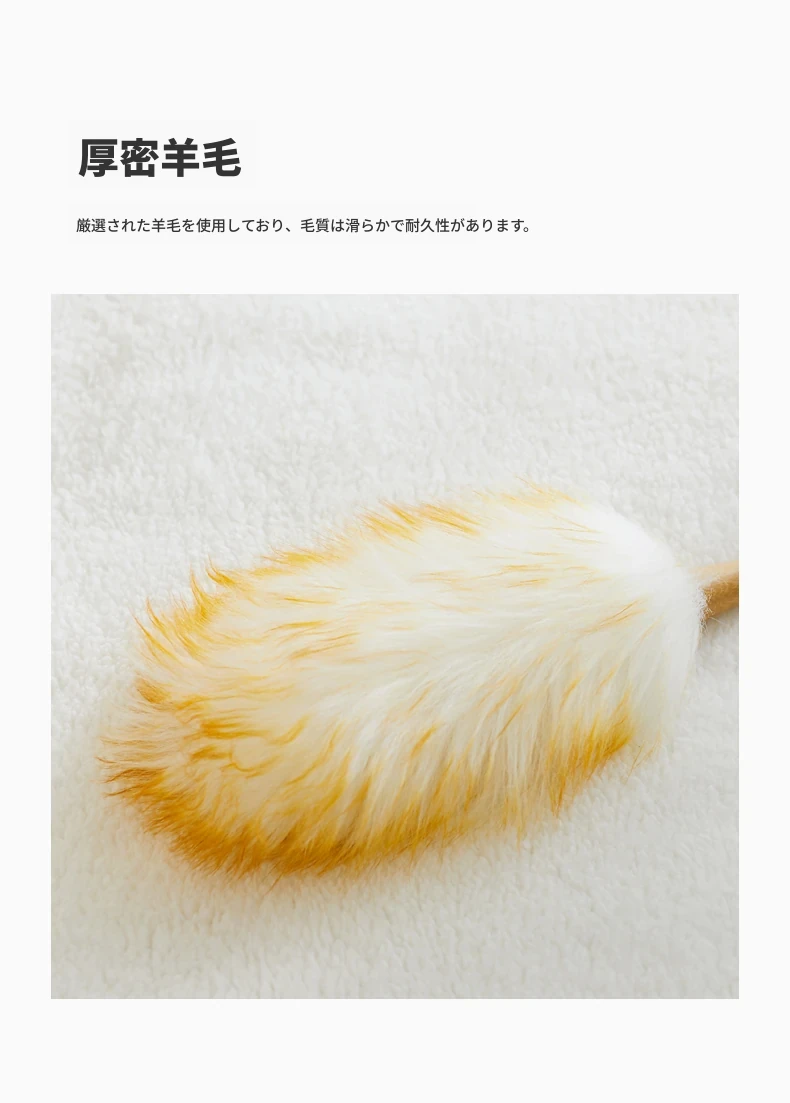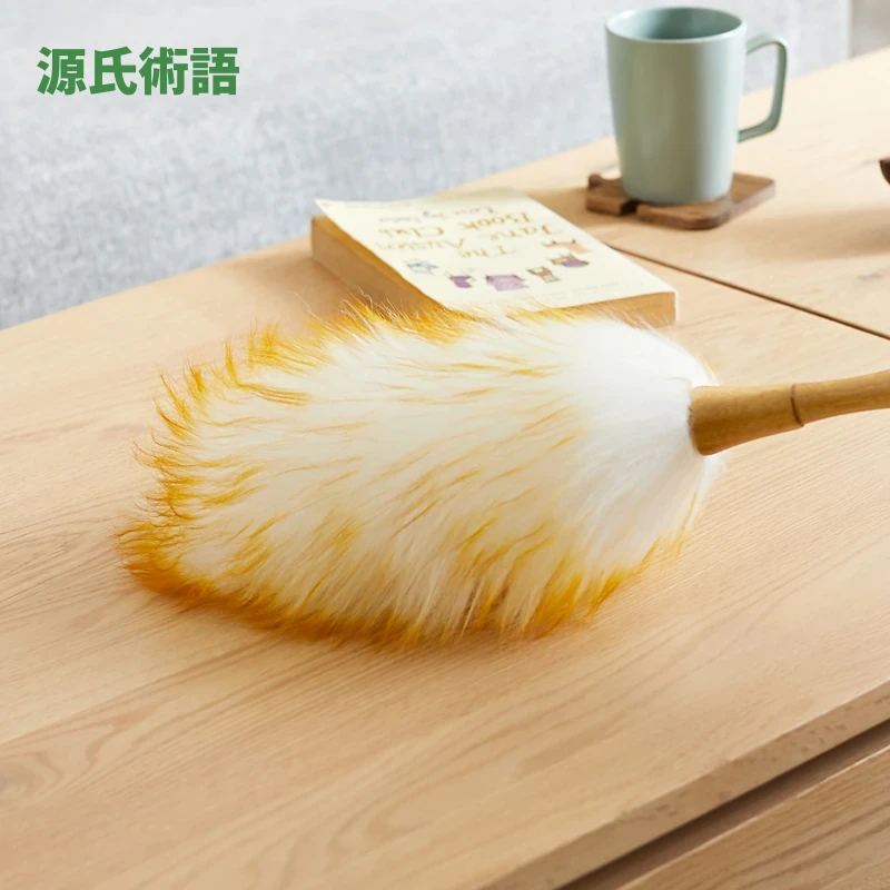 源氏木語の家庭用クリーニング 埃を逃さないウールダスター - 木製ハンドルでお掃除楽々!毛が抜けにくく、家事を快適にサポートします!軽量で使いやすく、隅々までキレイに!