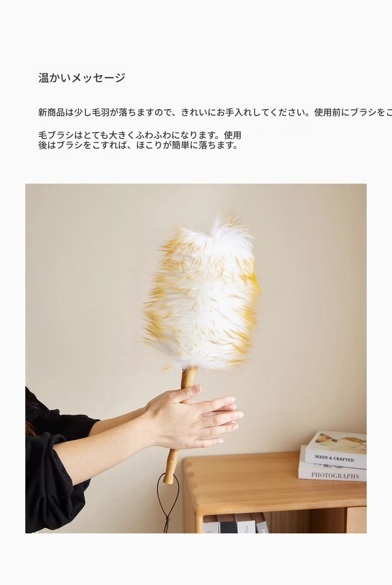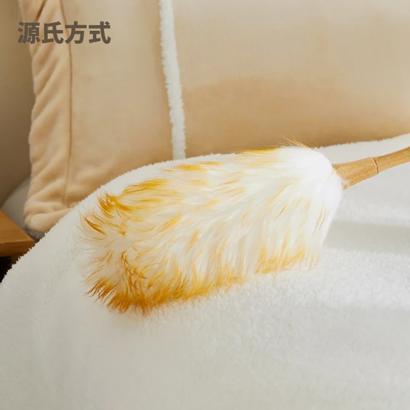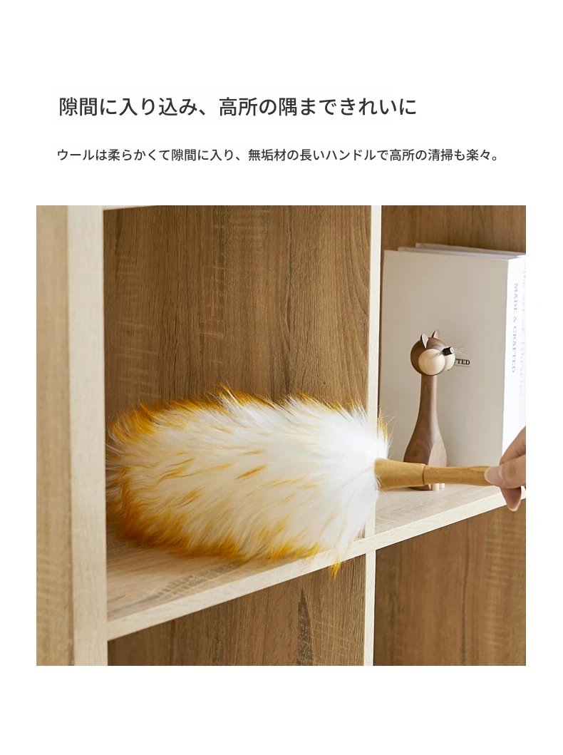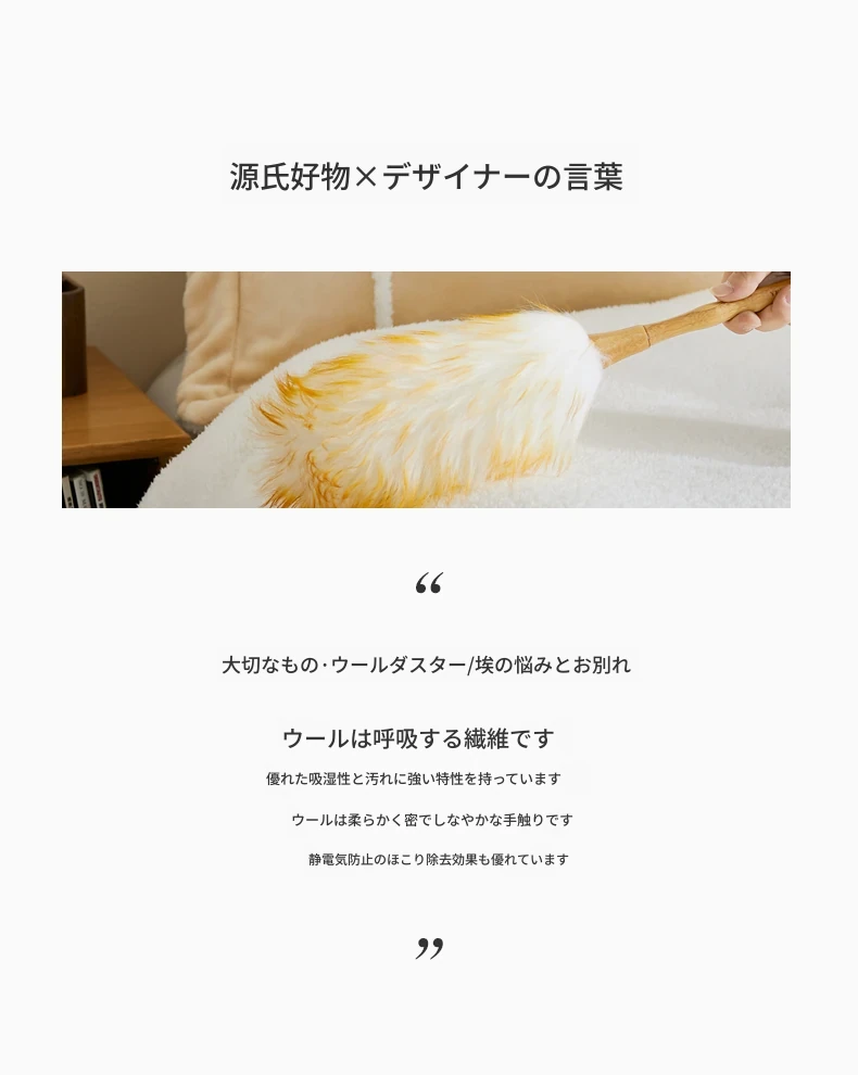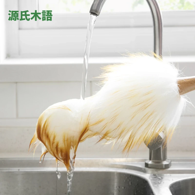 源氏木語の家庭用クリーニング 埃を逃さないウールダスター - 木製ハンドルでお掃除楽々!毛が抜けにくく、家事を快適にサポートします!軽量で使いやすく、隅々までキレイに!