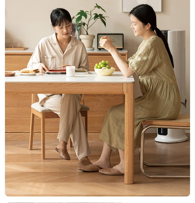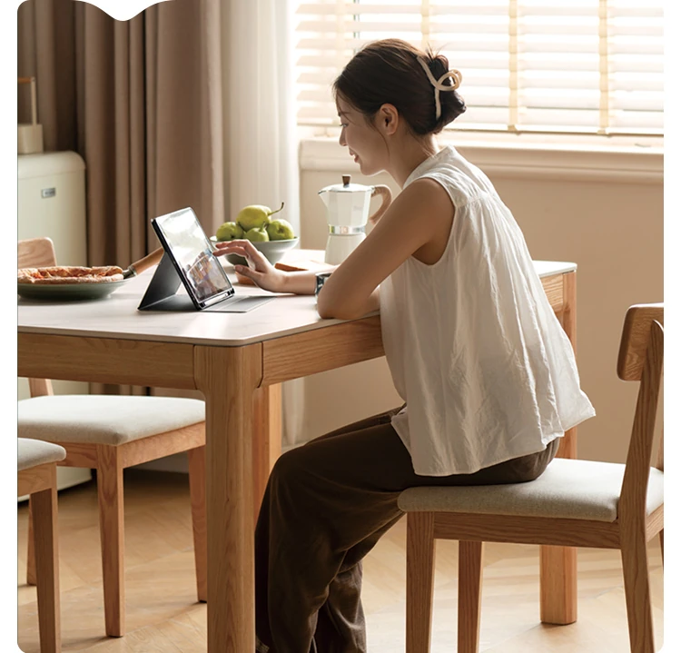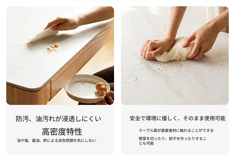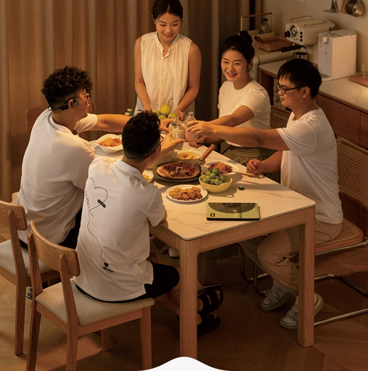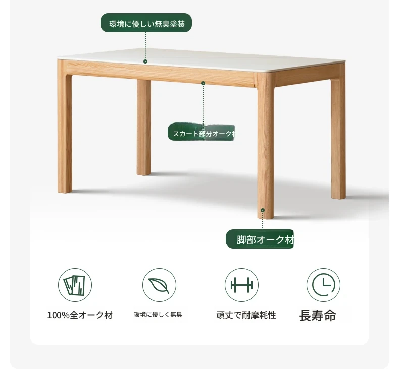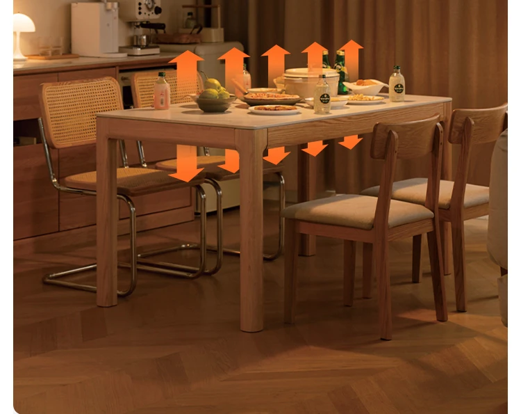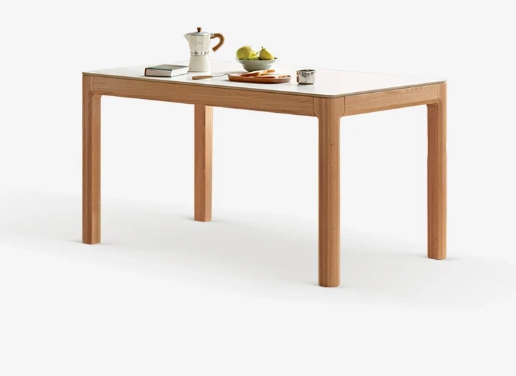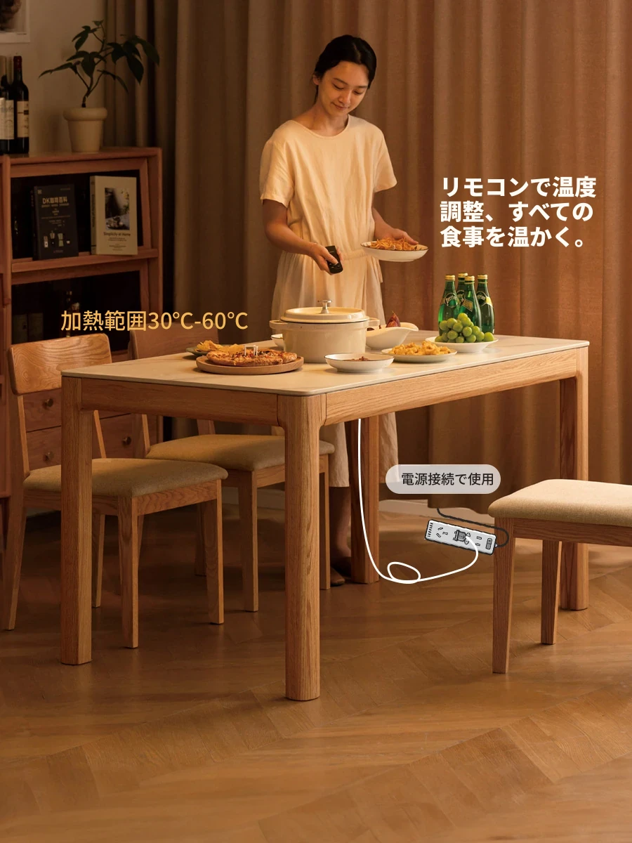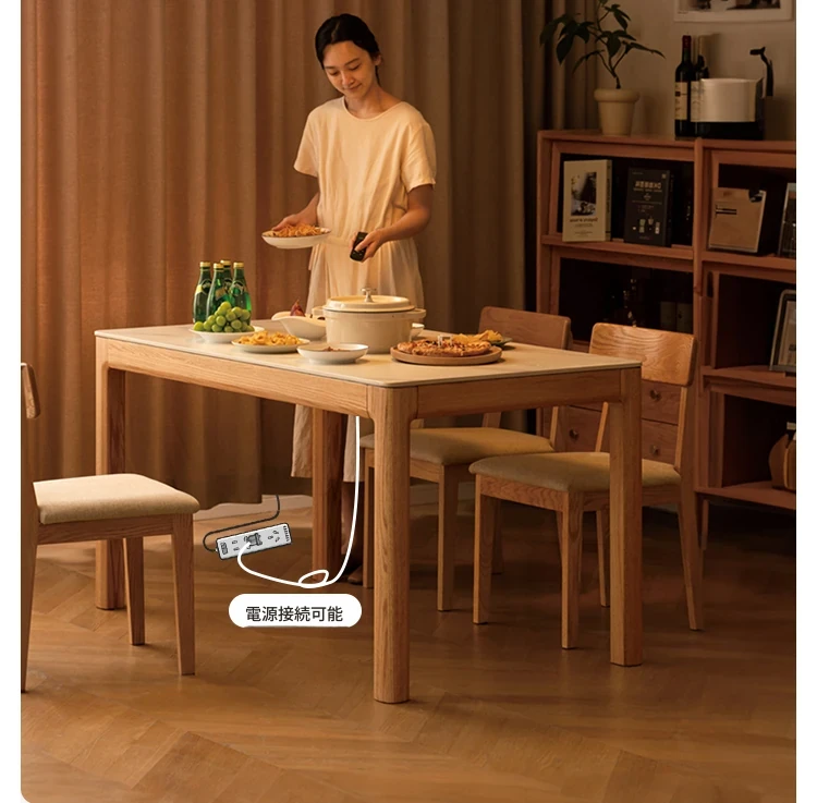 源氏木语の加熱岩板付きモダン簡約デザインの多機能無垢材ダイニングテーブル - 家庭用長方形で、食事を楽しむための理想的なテーブルです!