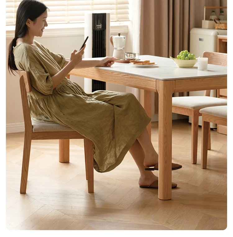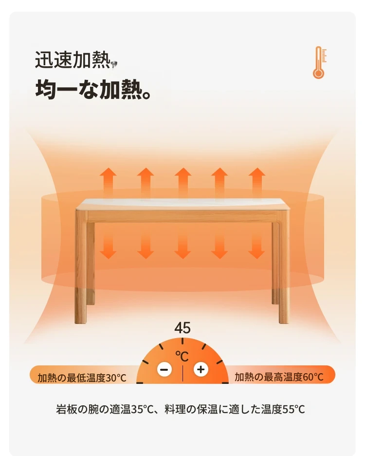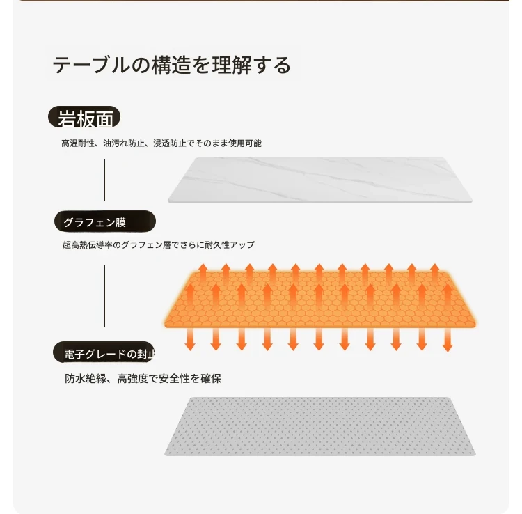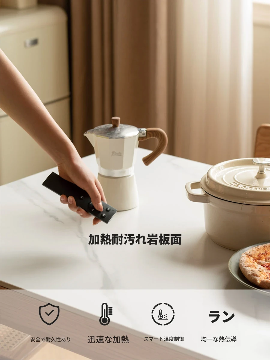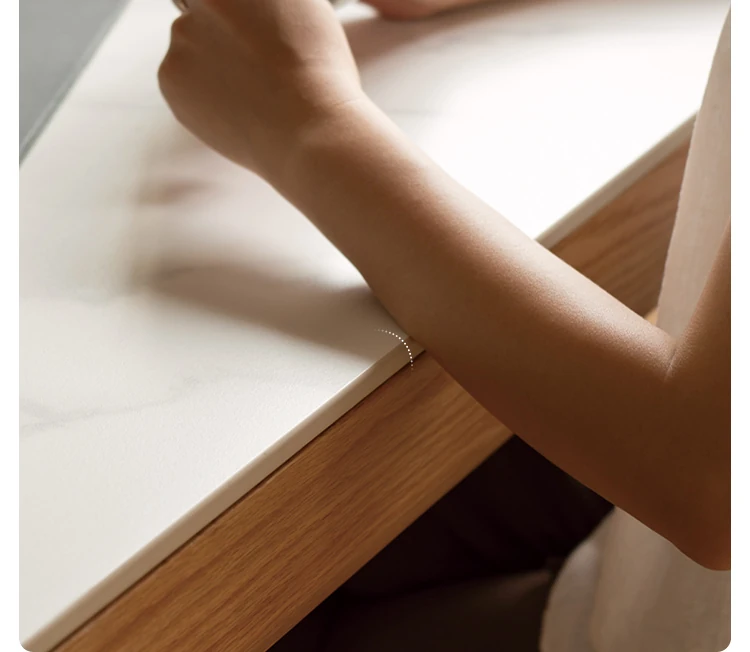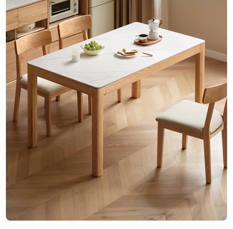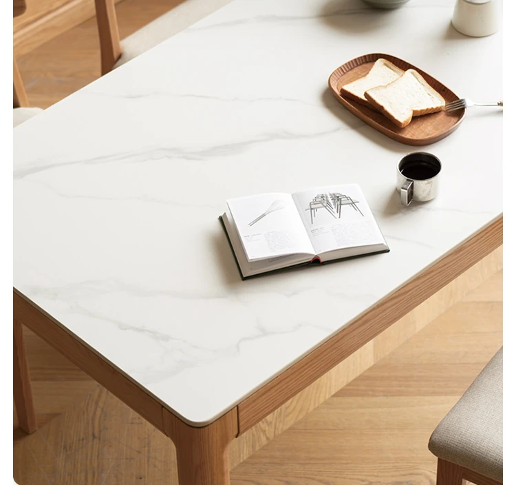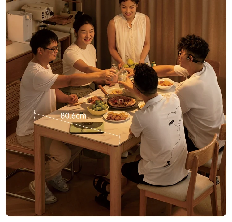 源氏木语の加熱岩板付きモダン簡約デザインの多機能無垢材ダイニングテーブル - 家庭用長方形で、食事を楽しむための理想的なテーブルです!