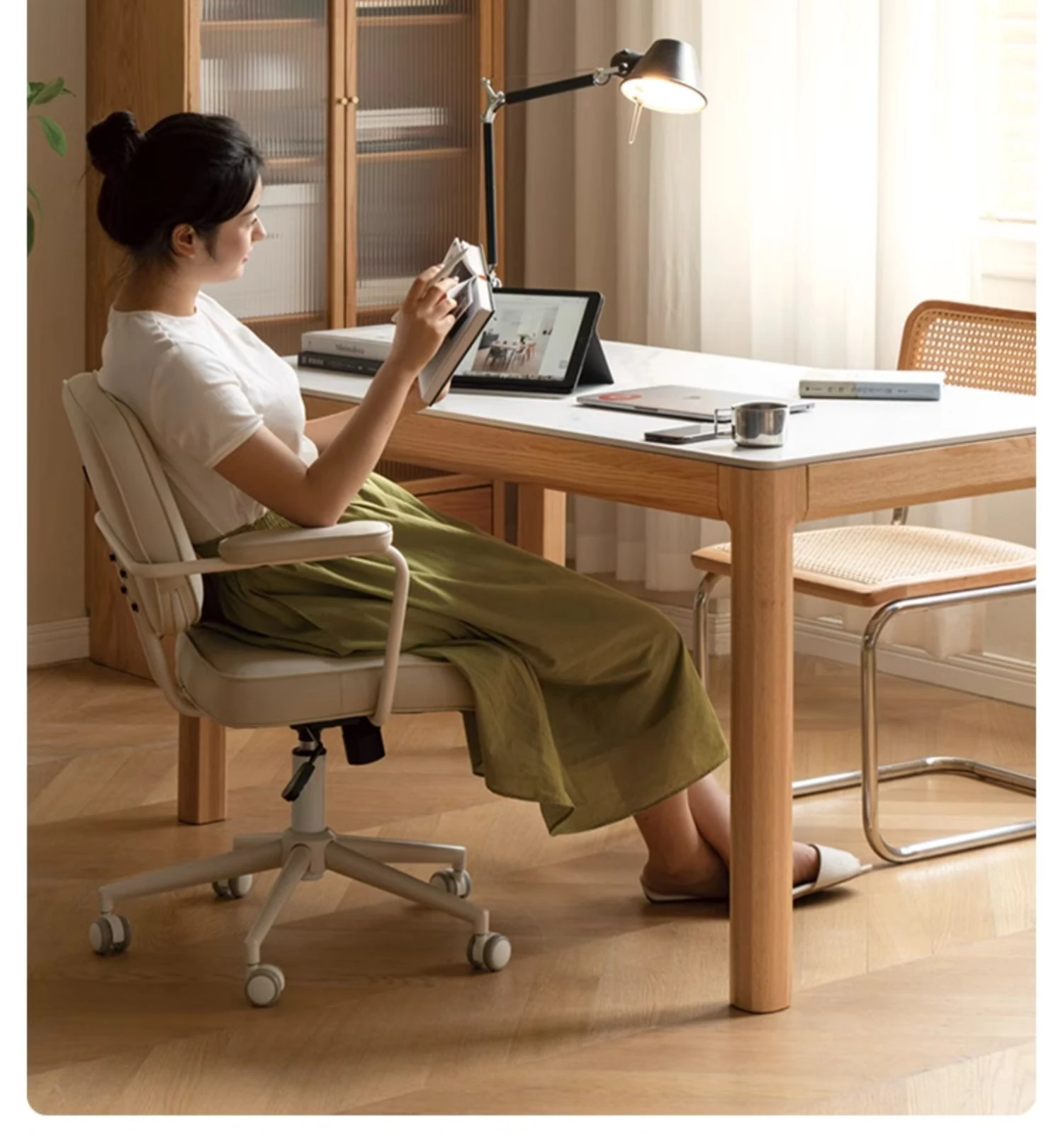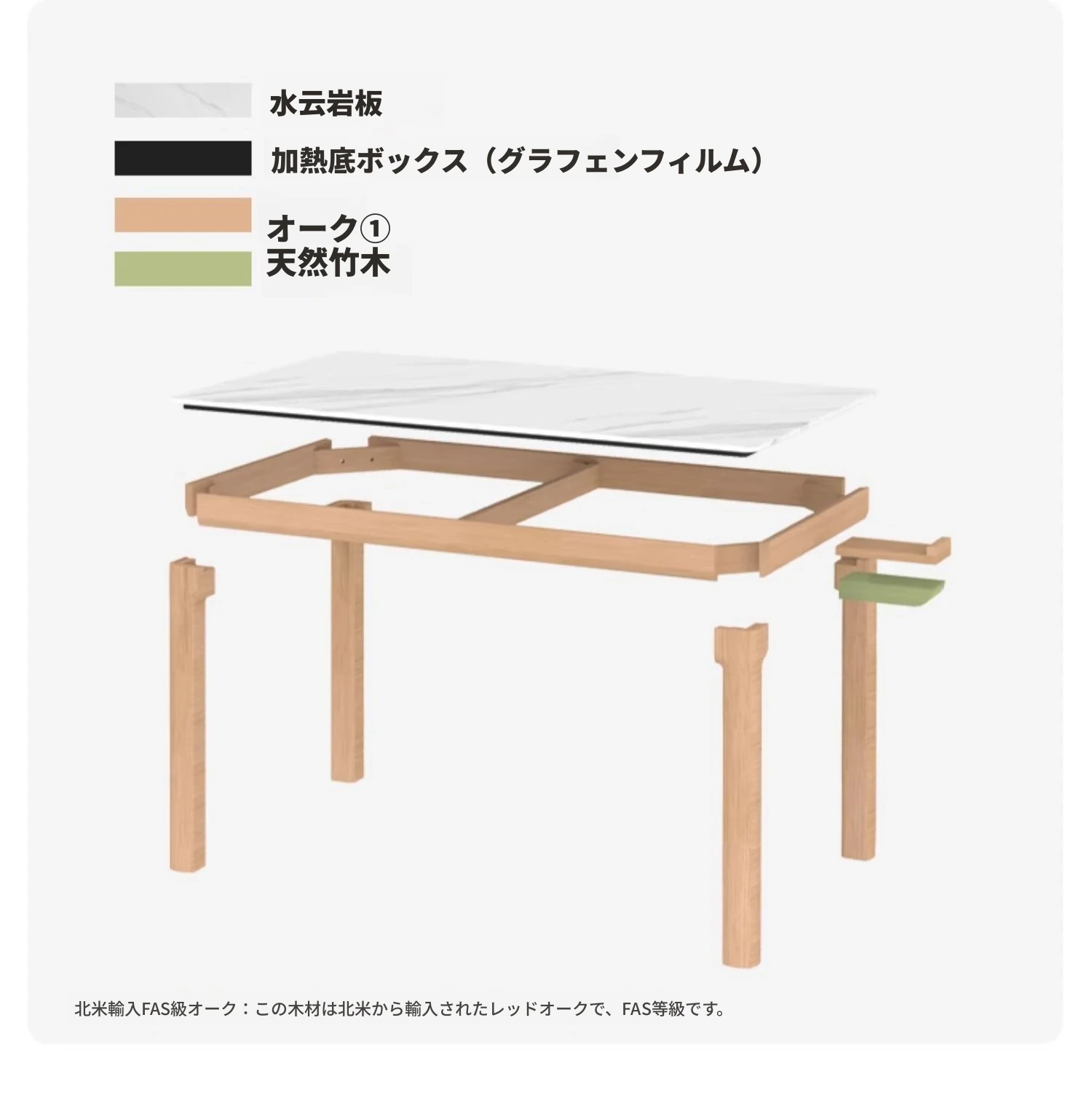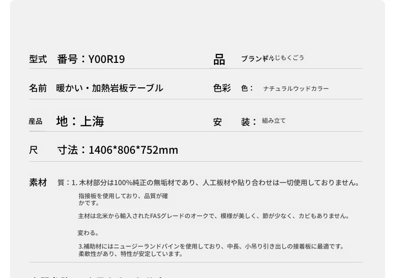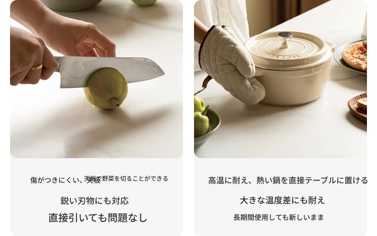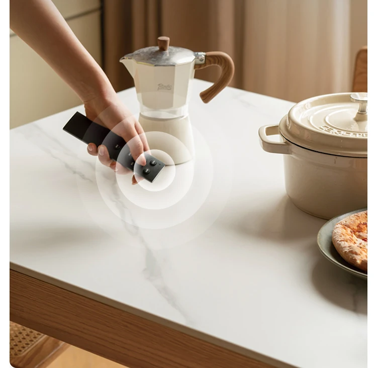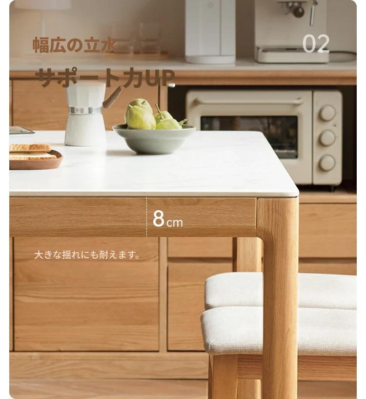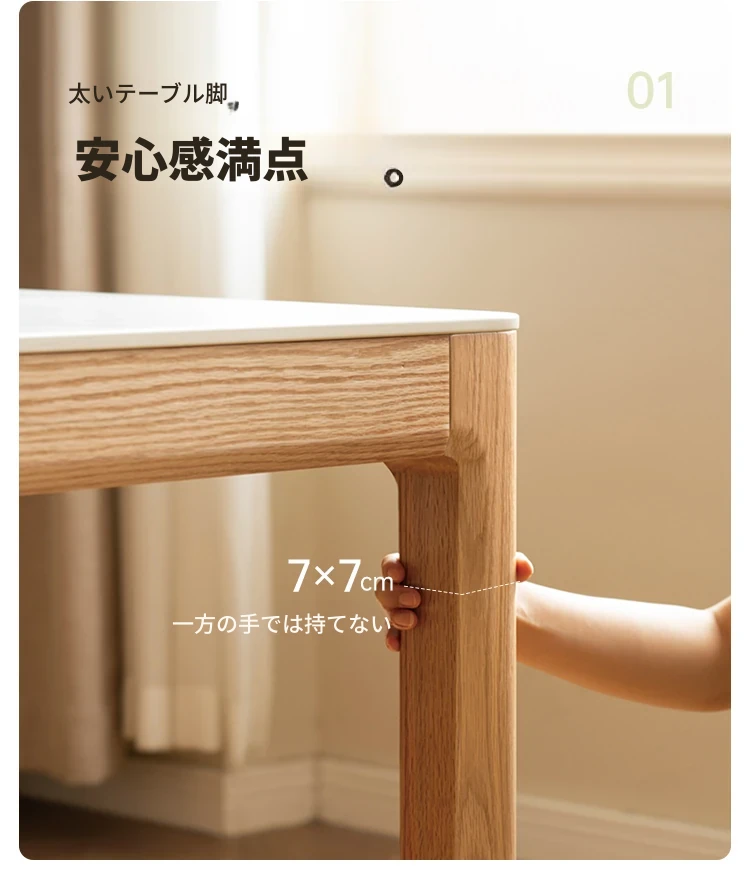 源氏木语の加熱岩板付きモダン簡約デザインの多機能無垢材ダイニングテーブル - 家庭用長方形で、食事を楽しむための理想的なテーブルです!