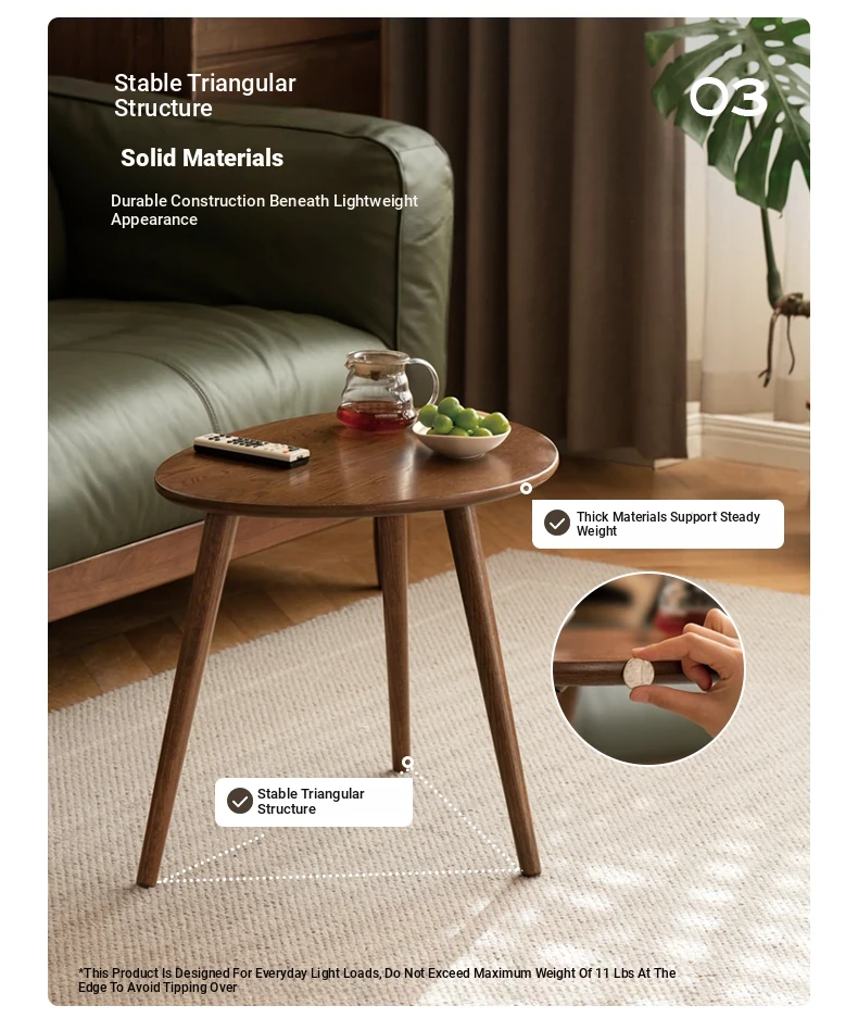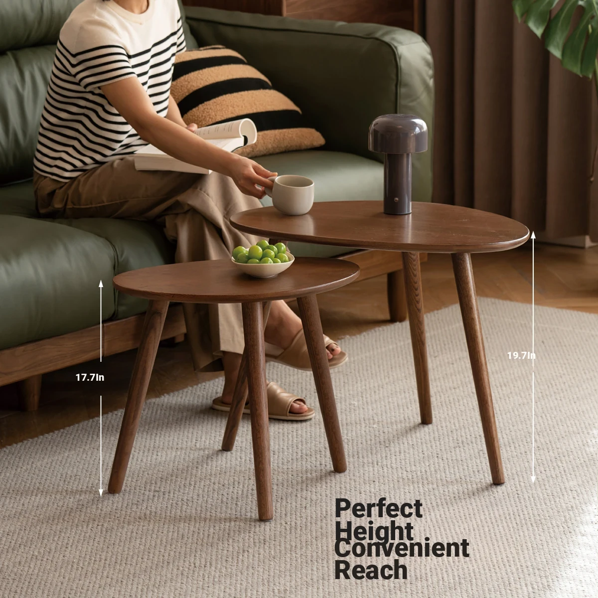 Genji Wooden Modern Minimalist Solid Wood Round Coffee Table – Stylish Corner Table for Living Room, Nordic Side Table for Small Spaces