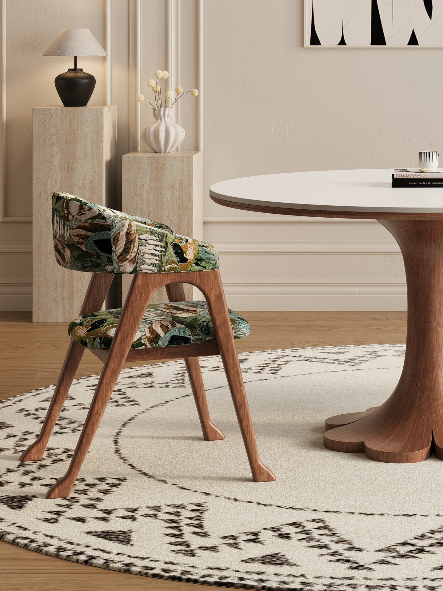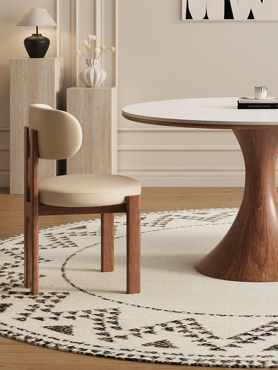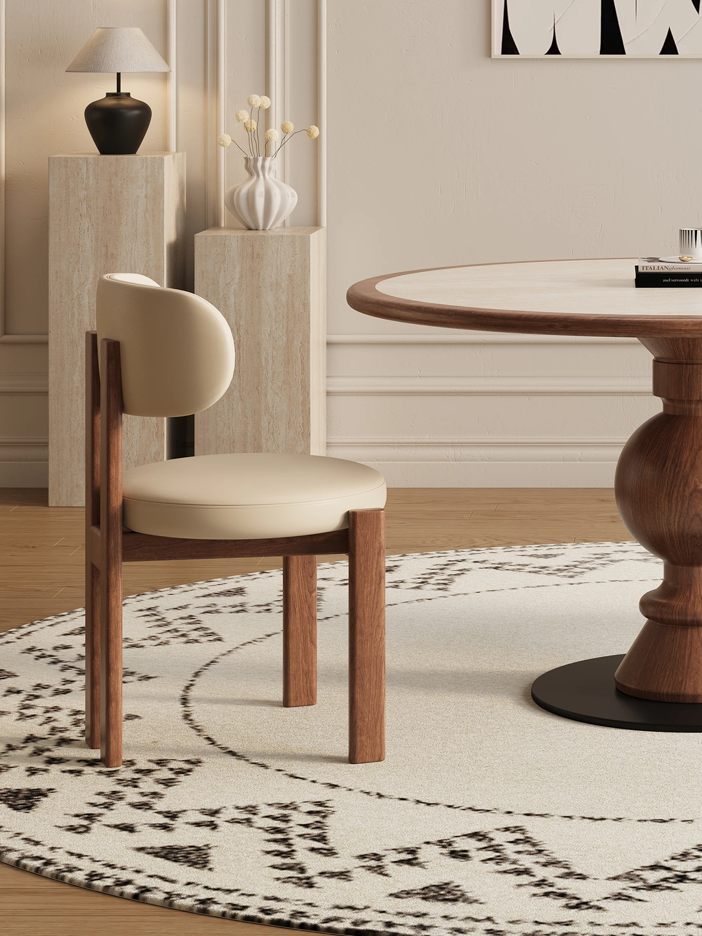 源氏木语 ブラックウォールナット 全木製 テーブルチェア 新中式デザイン リビングルームに最適!小型住宅にもぴったりの茶椅子と食事椅子を兼ね備えたアイテム!