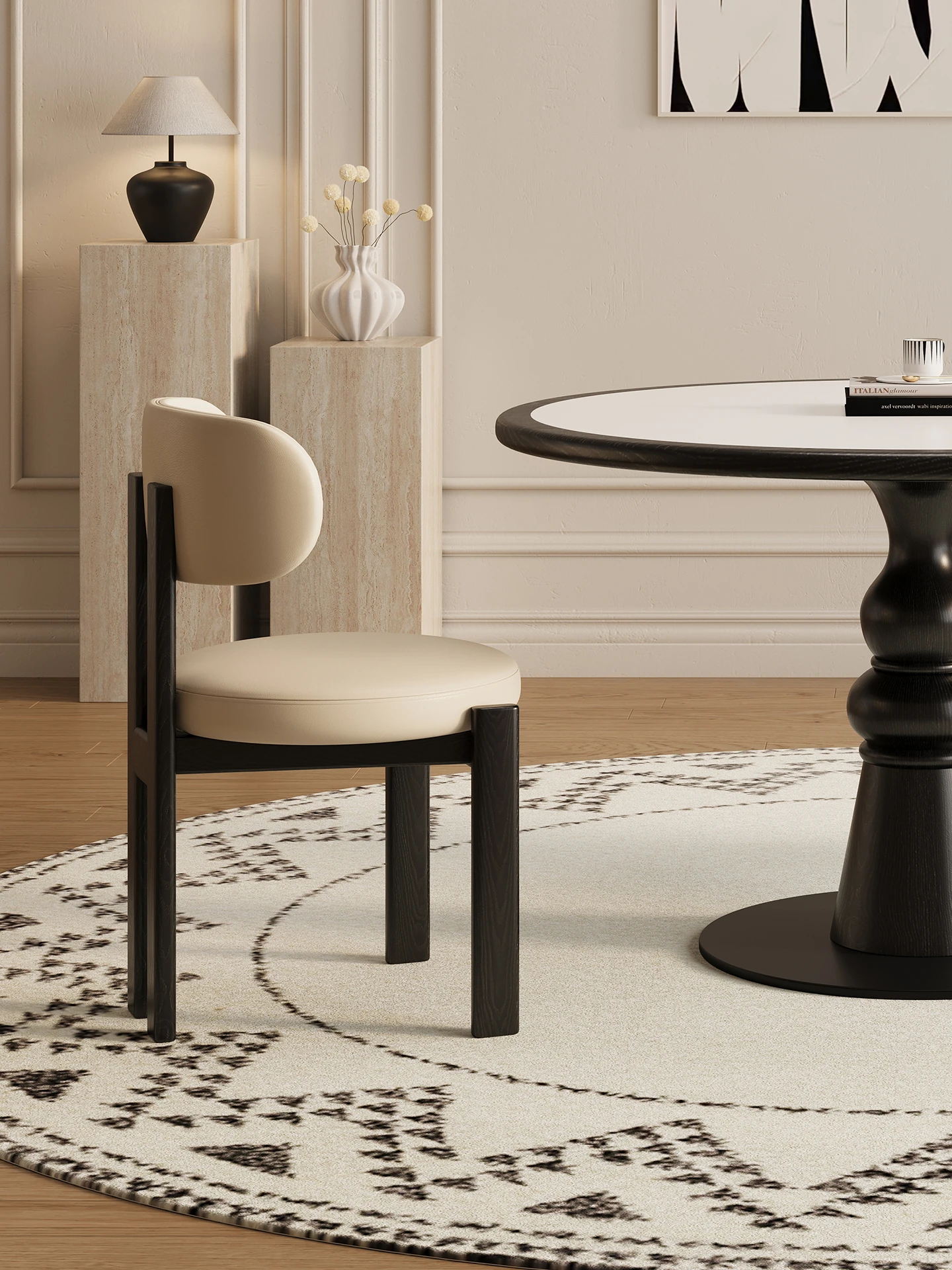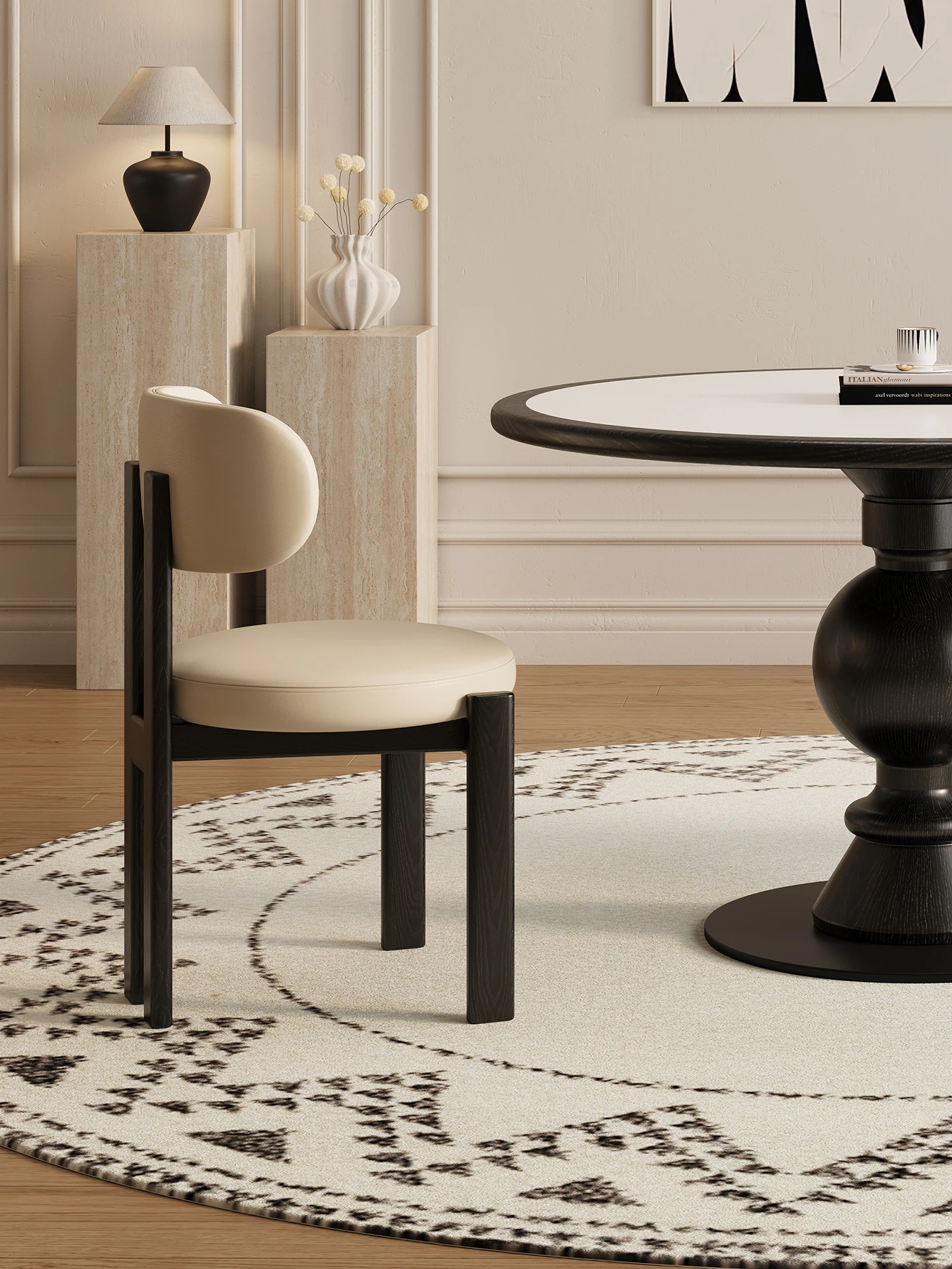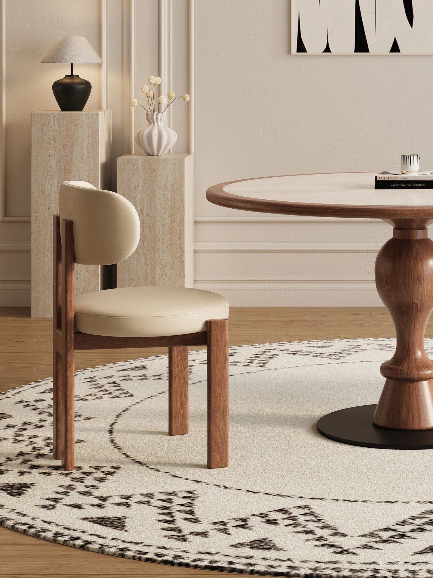 源氏木语 ブラックウォールナット 全木製 テーブルチェア 新中式デザイン リビングルームに最適!小型住宅にもぴったりの茶椅子と食事椅子を兼ね備えたアイテム!