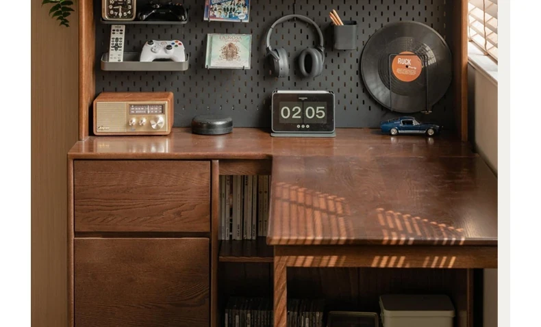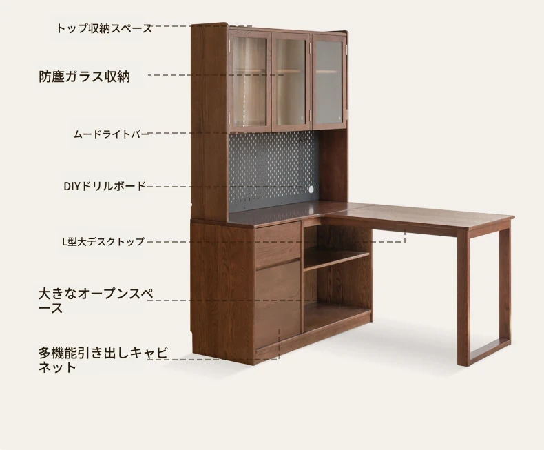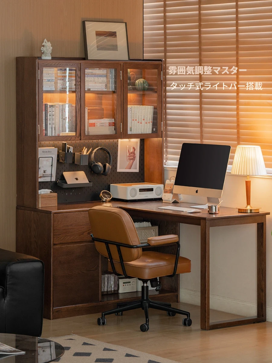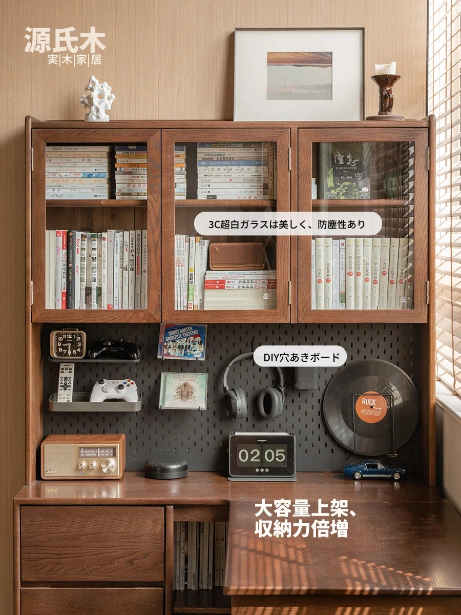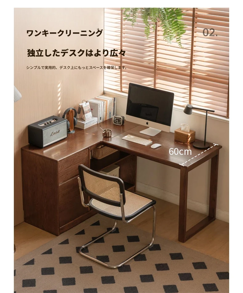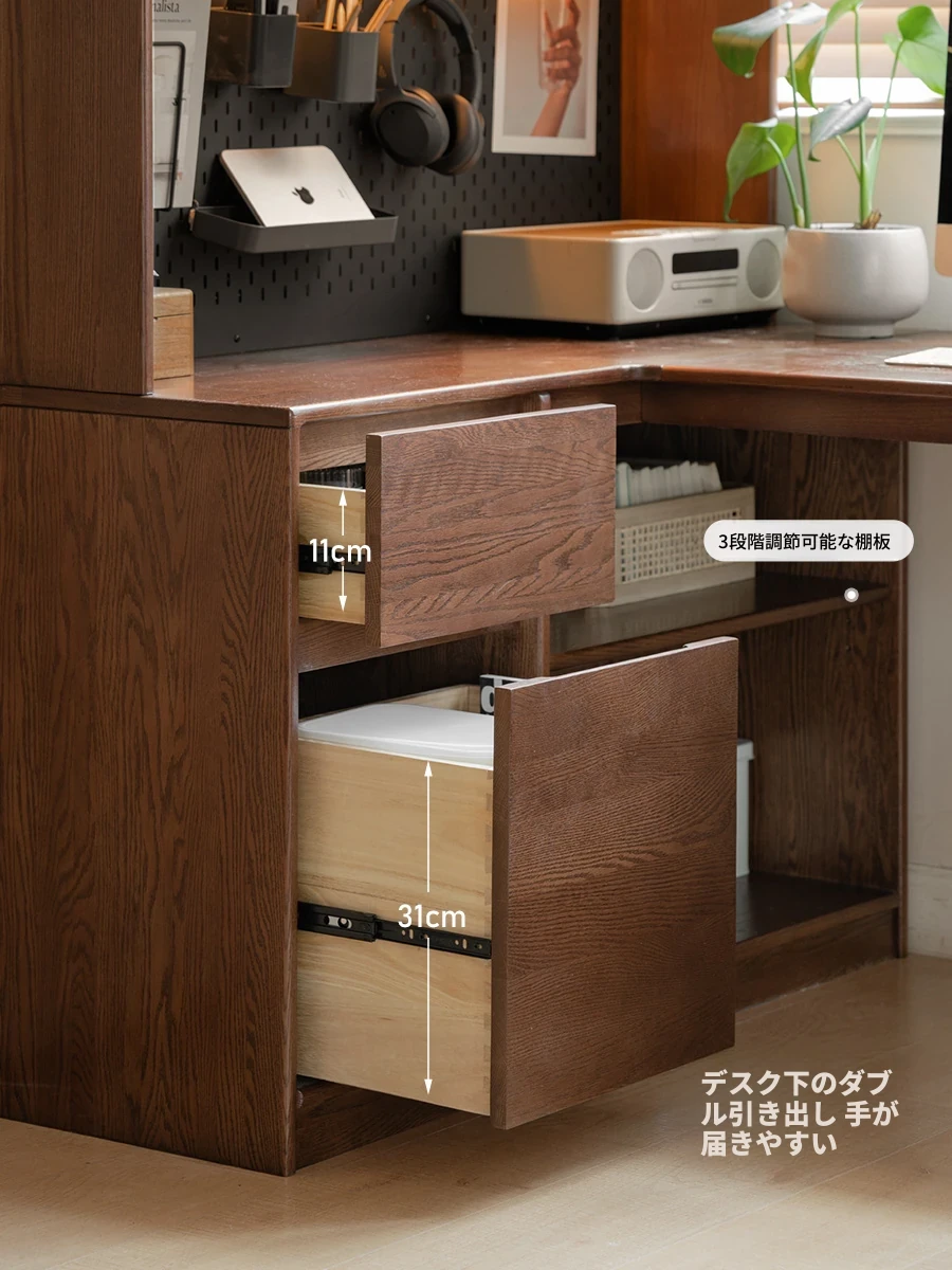 源氏木语 無垢材を使用したコンパクトなL字型デスク&書棚一体型 書斎用 学習デスク モダンでシンプルなデザイン 家庭用にもぴったり!デザインと機能性を兼ね備えた最適なデスクです。