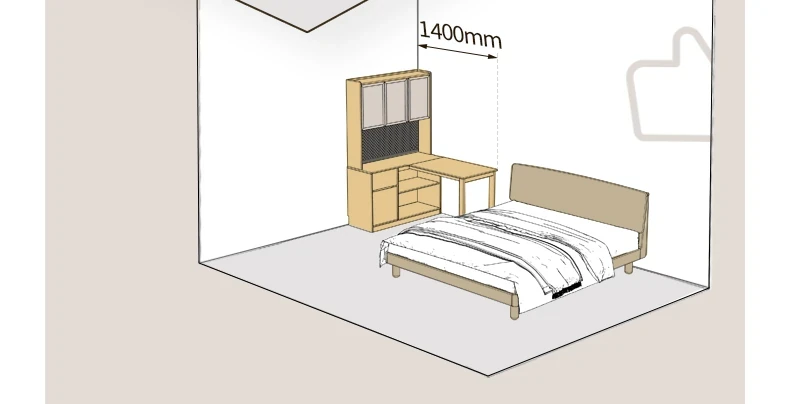 1.4メートル右回りコーナーデスク+棚(1400*1200*1825mm)H00X27