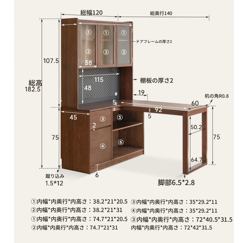 1.4メートル左回りコーナーデスク+棚(1400*1200*1825mm)H00X27