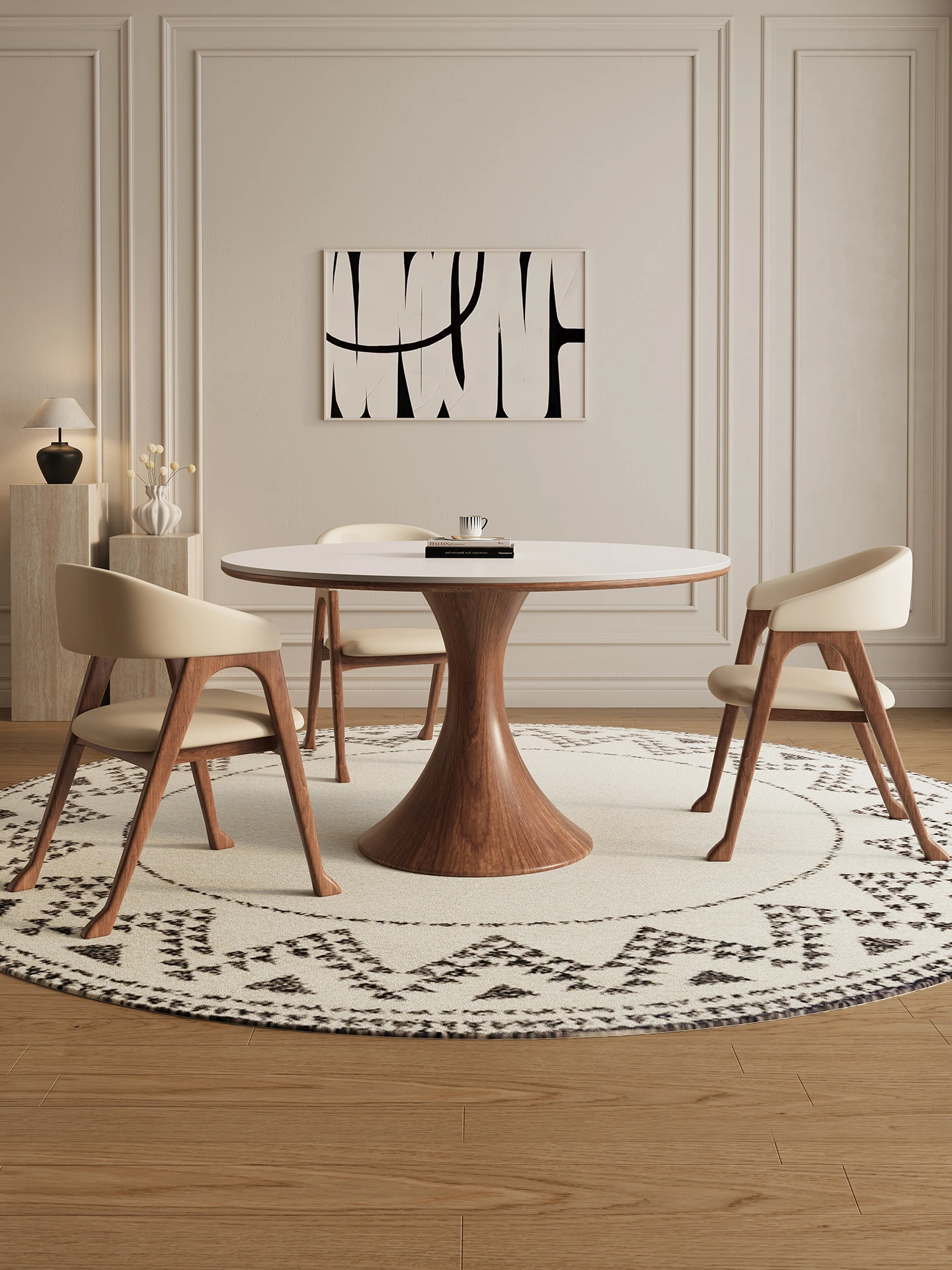 現代的でシンプルなデザインの無垢材ダイニングチェア。中世風のエレガントなソフトパッキング、ホテルやレストランに最適。高級感あふれるリラックスした座り心地を実現した、家庭用にもぴったりな背もたれ付きチェアです。